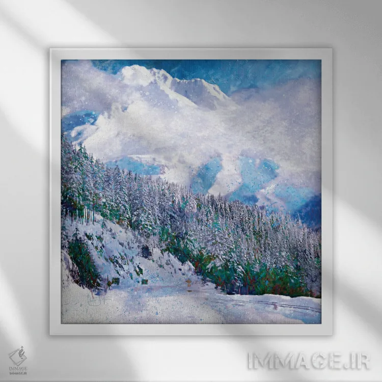 براساس پالت سرد اثر، قاب سفید مات (فریم باریک) پیشنهاد اول است و نقرهای برسخورده (متالیک) مکمل. برای سفارشهای پروژهای با ابعاد و قابهای اختصاصی با ایماژ در تماس باشید.
