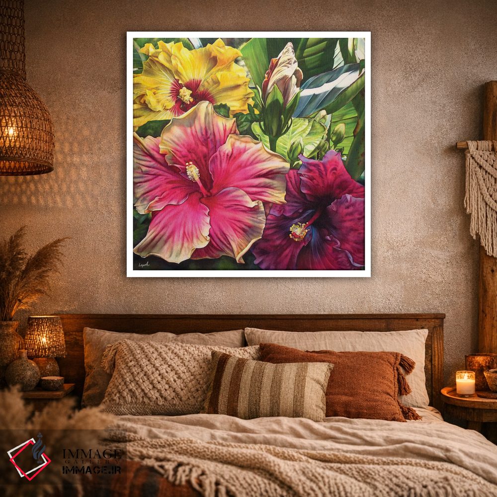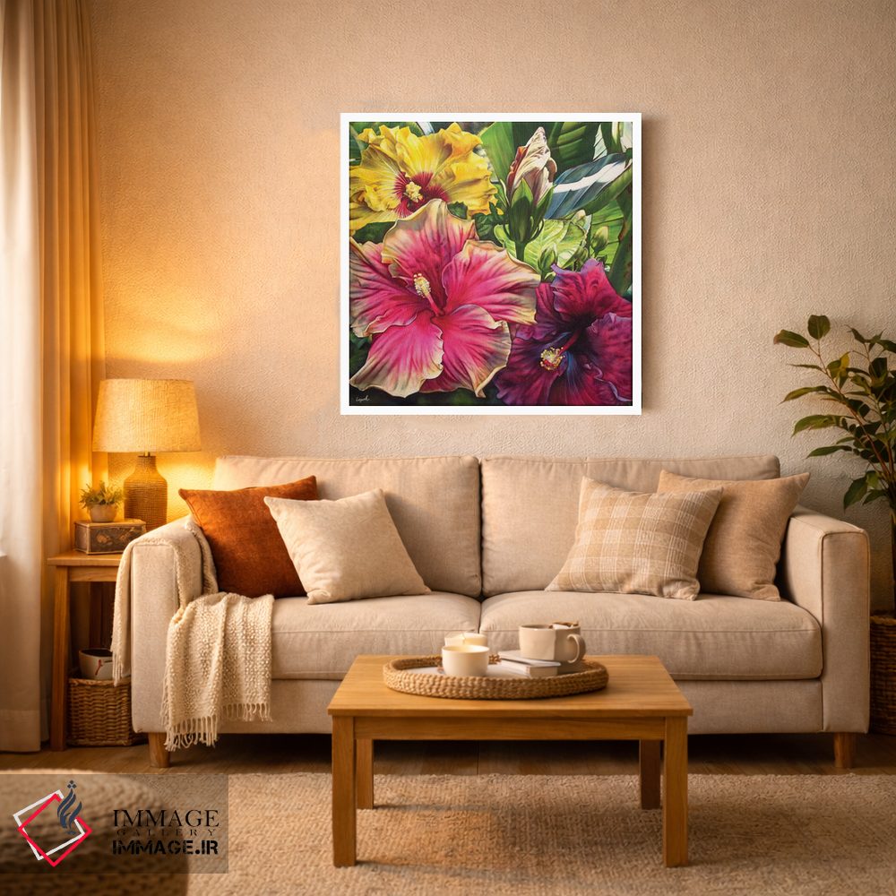 بوم گالری ایماژ نسخهی چیدماناتیوِ حرفهای از یک اثر هنری است؛ روی کنواس سفیدِ یکدست و بدون اسید با چاپ هنریِ دقیق (Giclée) برای گذارهای نرمتر و وضوح بالاتر با جوهرهای آرشیویِ حرفهای برای لایههای رنگی خواناتر؛ روی دیوار، کار یکدستتر و خوشکیفیتتر دیده میشود. تابلو پس از آمادهسازی روی کلاف کشیده میشود و نصب آن ساده و بیدردسر است.