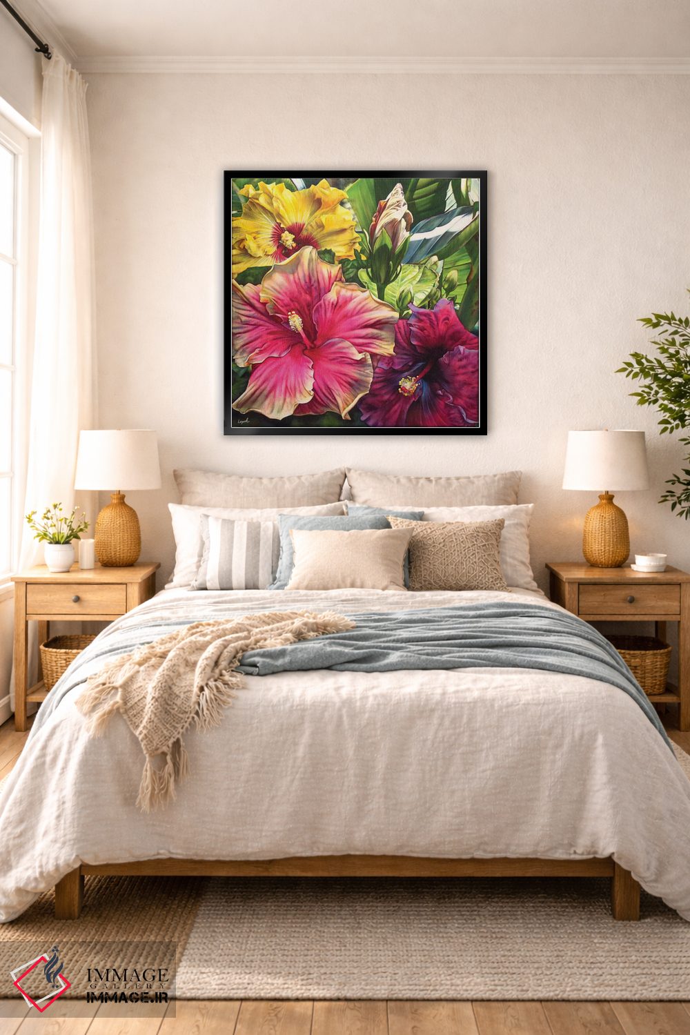 گاهی یک اثر کافیست تا فضا جمعوجور شود؛ «ساحل شمالی (هاوایی)» اثرِ «لیزا لوپاک» سلیقهٔ صاحبخانه را بیاغراق نشان میدهد؛ برای اتاق خوابهای آرام و روشن پیشنهاد میشود. با نور گرم یا سرد، خوانایی و وقارش را حفظ میکند.