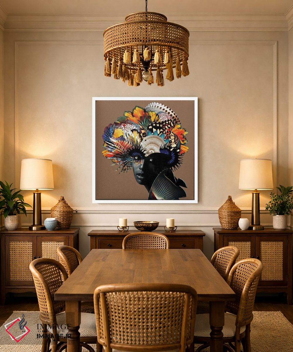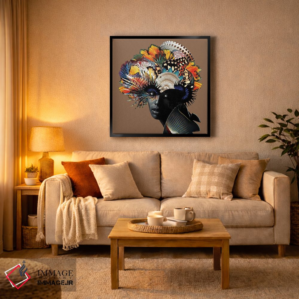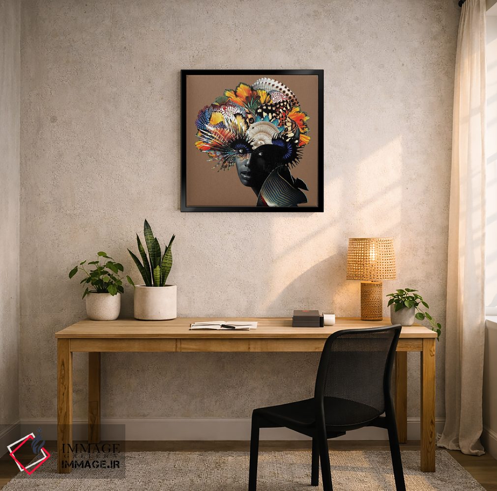 براساس پالت ترکیبی اثر، قاب تیک گرم (چوبی) پیشنهاد اول است و مشکی مات (فریم متوسط) مکمل. برای سفارشهای پروژهای با ابعاد و قابهای اختصاصی با ایماژ در تماس باشید.