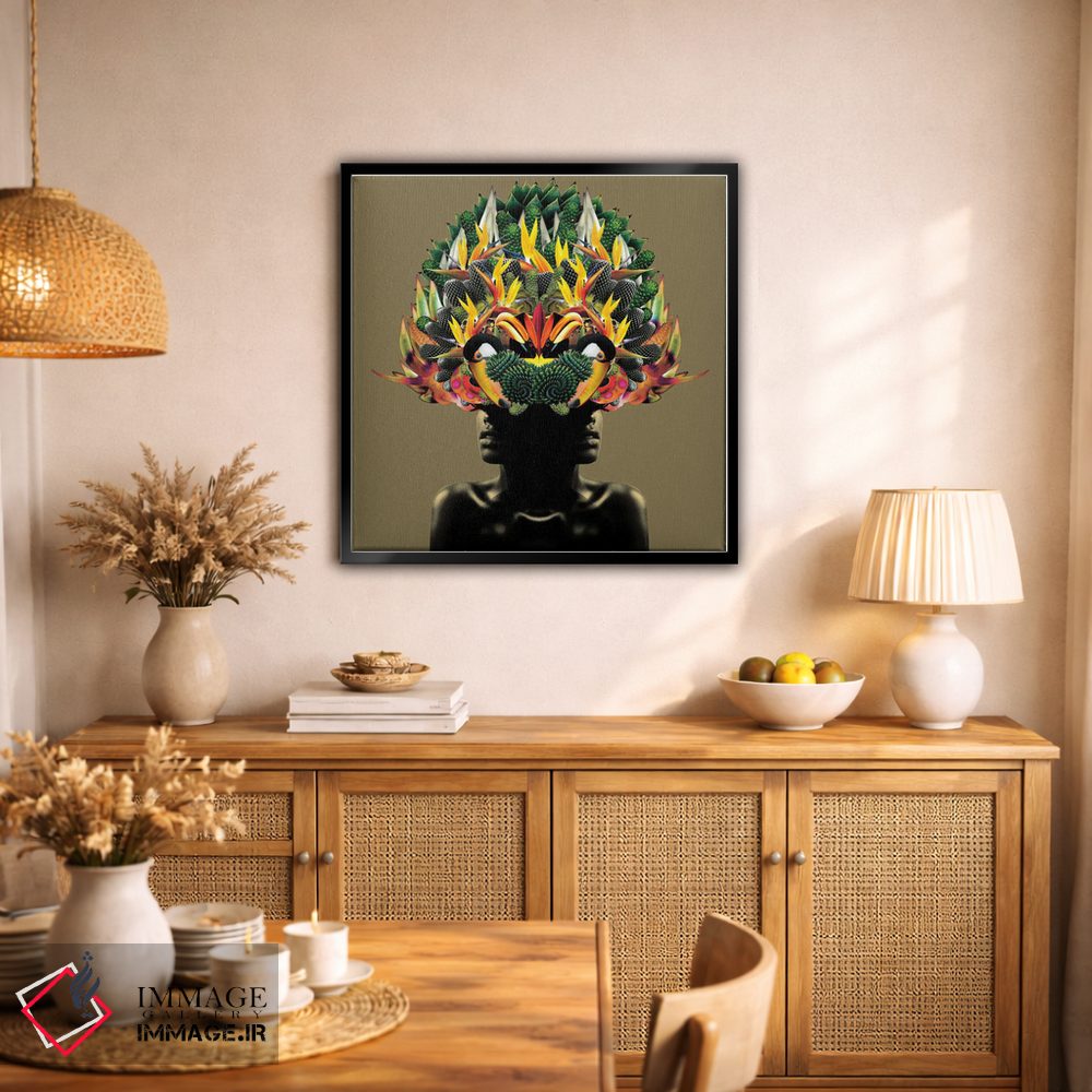 براساس پالت ترکیبی اثر، قاب تیک گرم (چوبی) پیشنهاد اول است و مشکی مات (فریم متوسط) مکمل. برای سفارشهای پروژهای با ابعاد و قابهای اختصاصی با ایماژ در تماس باشید.