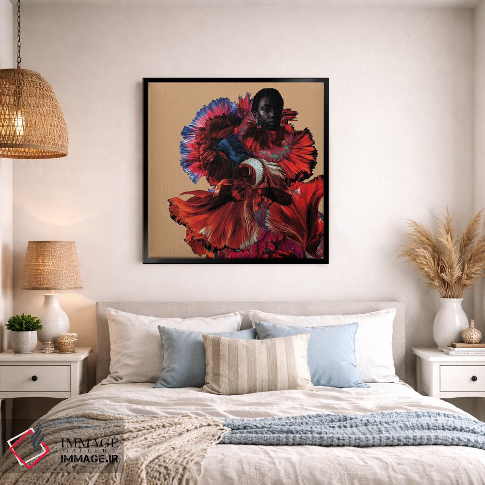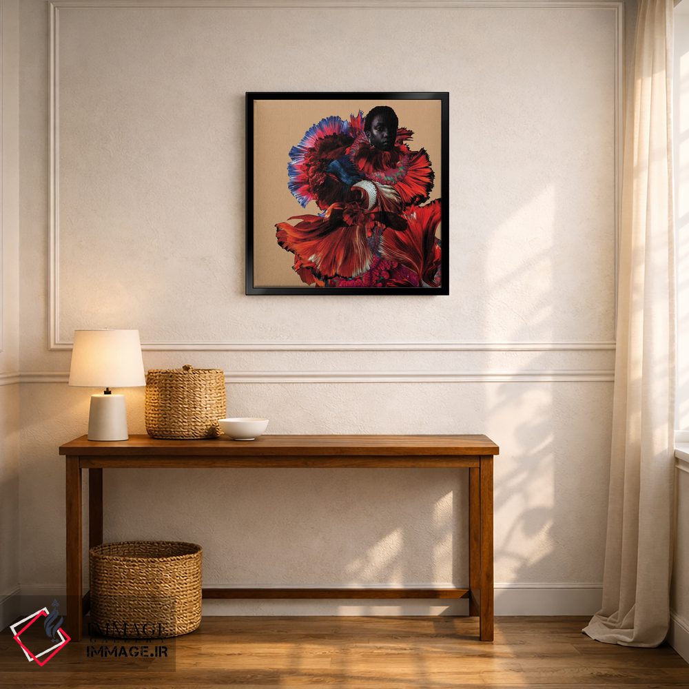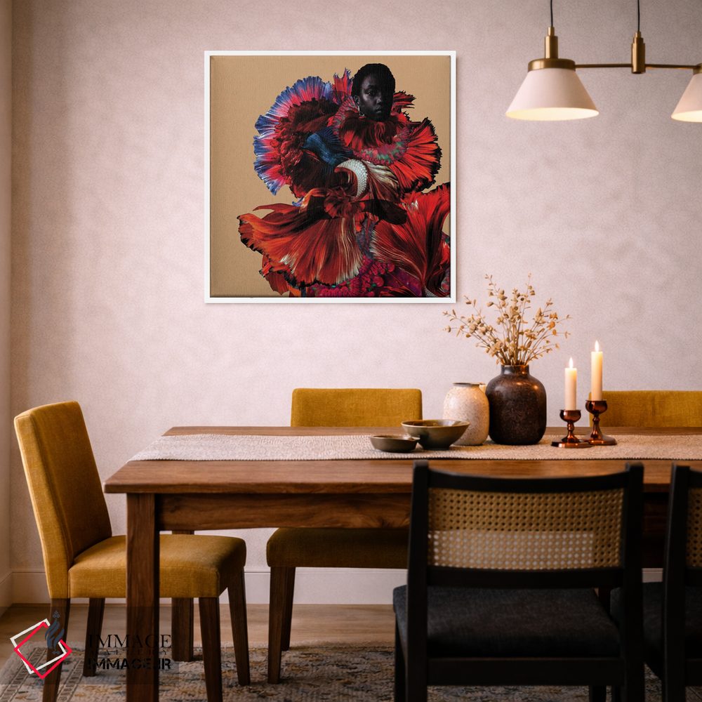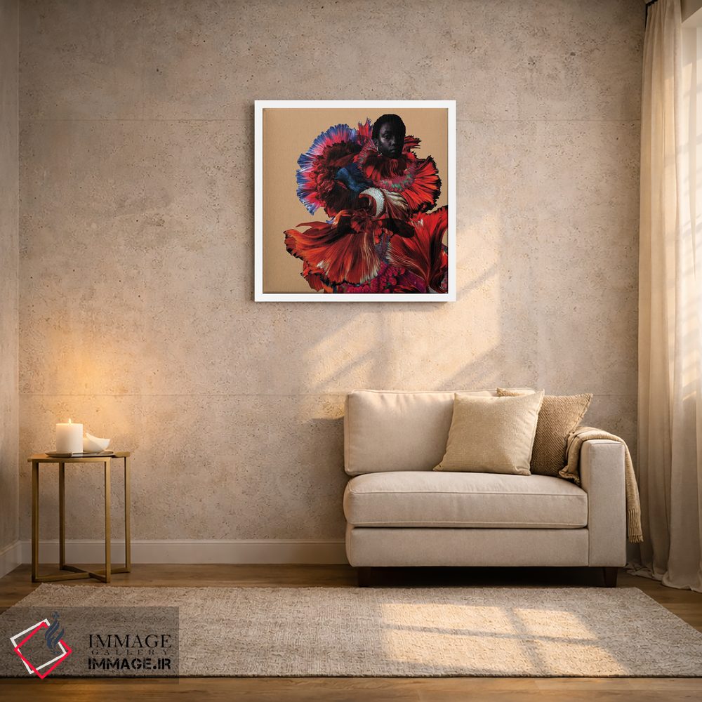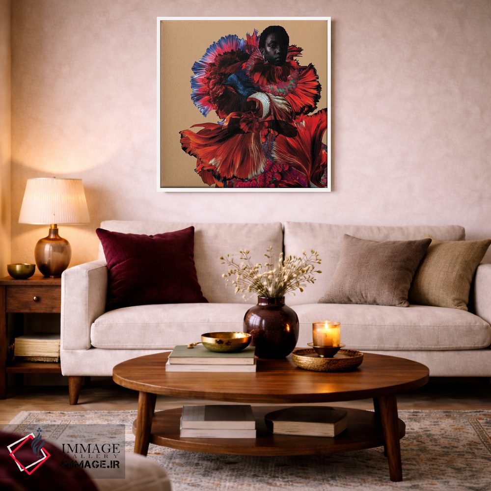 براساس پالت ترکیبی اثر، قاب تیک گرم (چوبی) پیشنهاد اول است و مشکی مات (فریم متوسط) مکمل. برای سفارشهای پروژهای با ابعاد و قابهای اختصاصی با ایماژ در تماس باشید.