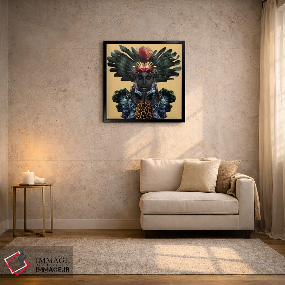براساس پالت ترکیبی اثر، قاب تیک گرم (چوبی) پیشنهاد اول است و مشکی مات (فریم متوسط) مکمل. برای سفارشهای پروژهای با ابعاد و قابهای اختصاصی با ایماژ در تماس باشید.