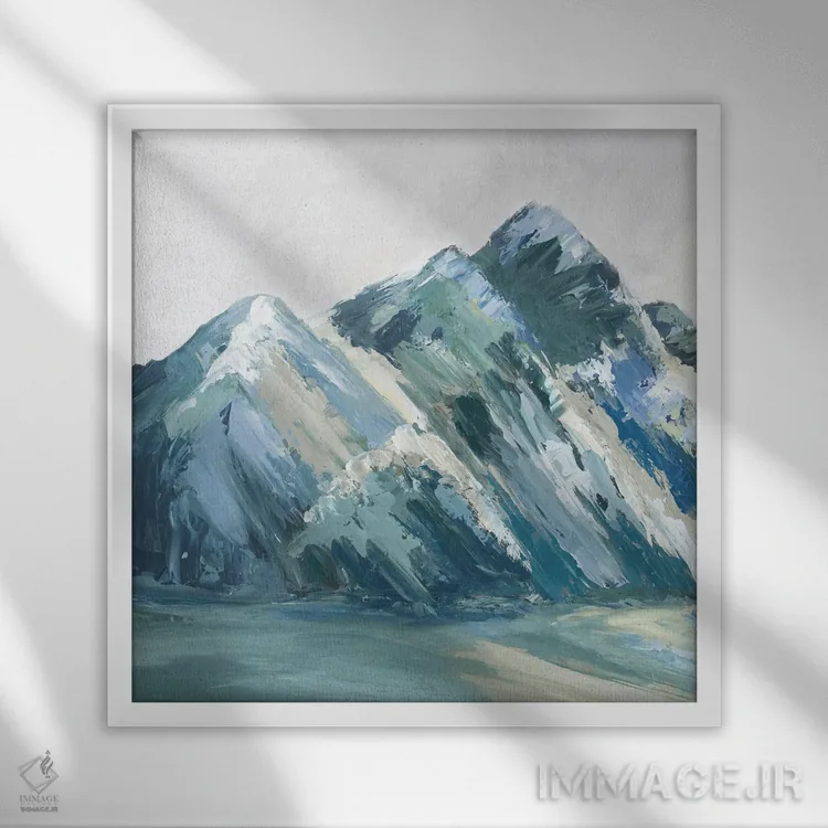 براساس پالت سرد اثر، قاب سفید مات (فریم باریک) پیشنهاد اول است و نقرهای برسخورده (متالیک) مکمل. برای سفارشهای پروژهای با ابعاد و قابهای اختصاصی با ایماژ در تماس باشید.