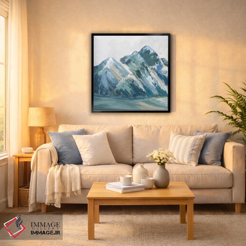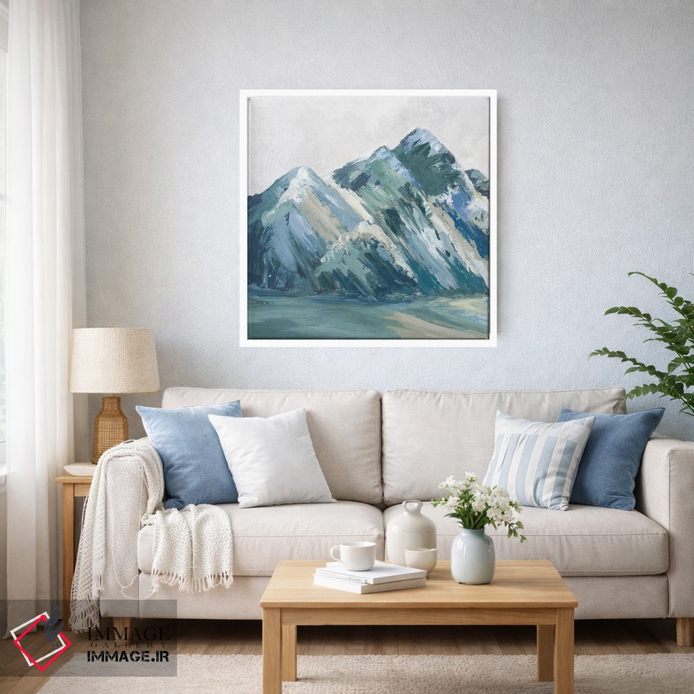 در «کوههای پالت آبی II» اثرِ «لونا ماویس»، رنگ و فرم نقش اصلی را دارند؛ انتخابی خوب برای فضاهای امروزی و دیوارهای مینیمال.