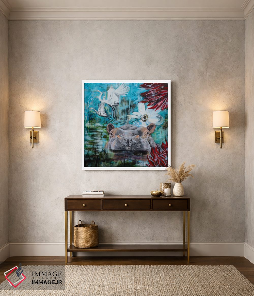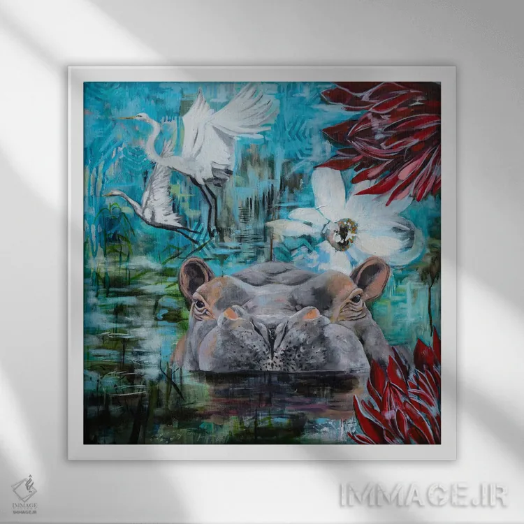 براساس پالت ترکیبی اثر، قاب تیک گرم (چوبی) پیشنهاد اول است و مشکی مات (فریم متوسط) مکمل. برای سفارشهای پروژهای با ابعاد و قابهای اختصاصی با ایماژ در تماس باشید.