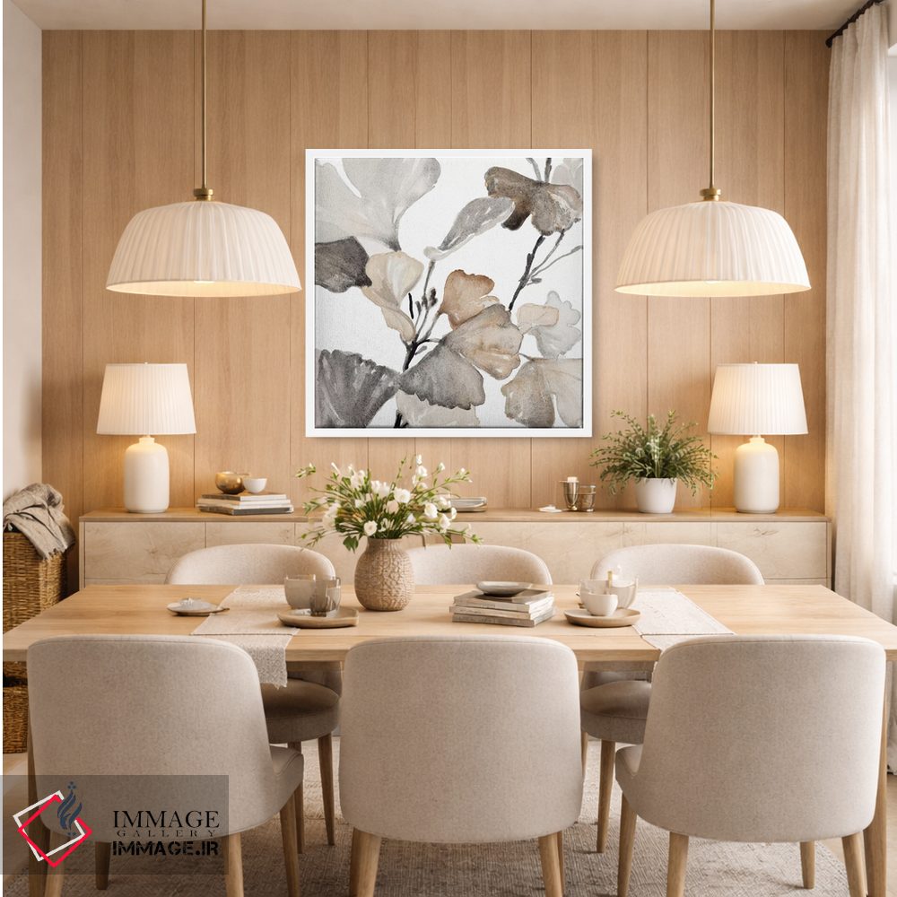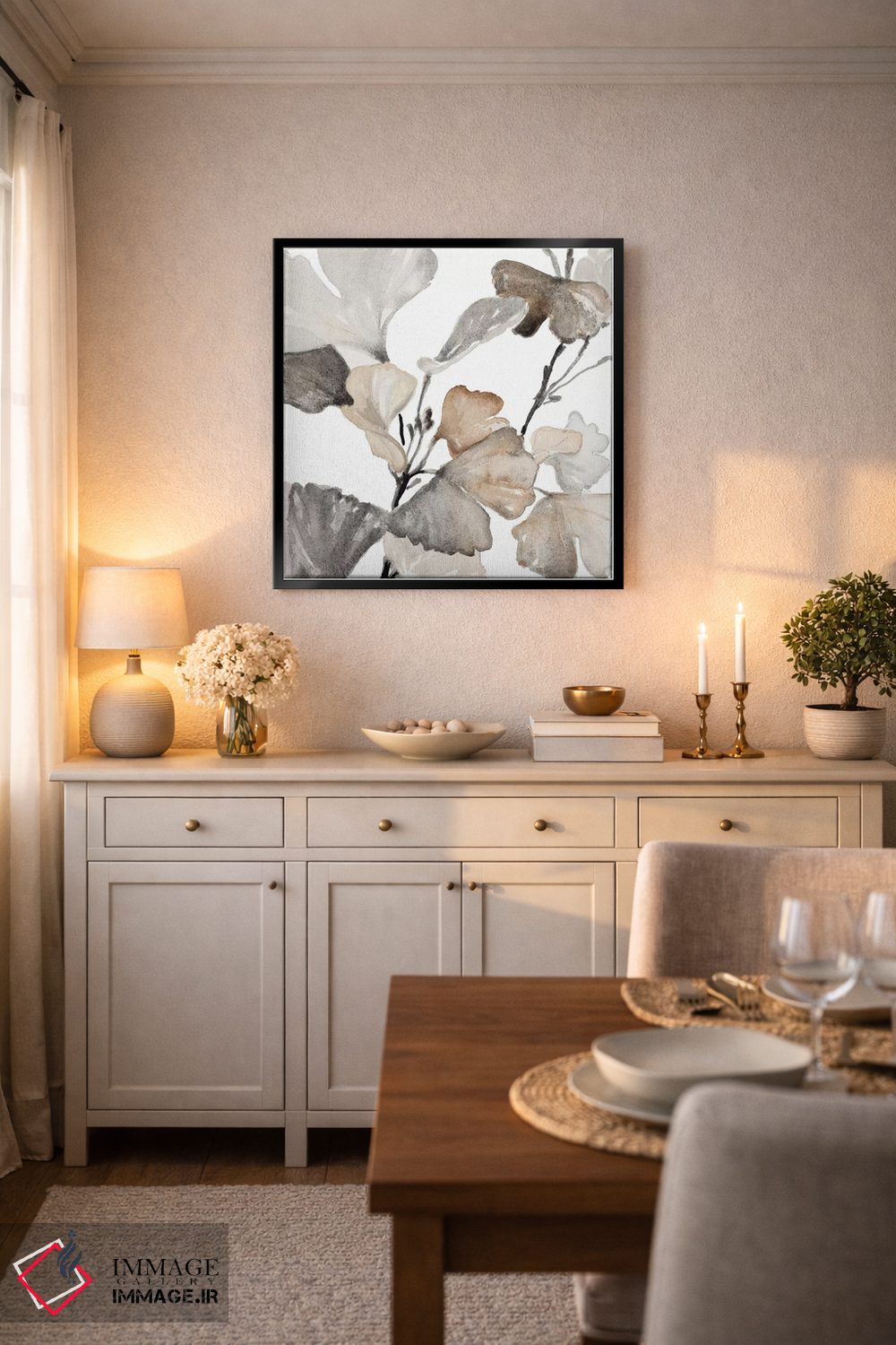 «"ساقههای جینکو خنثی II"» اثرِ «لِینی لورث» میتواند چیدمان را از خشکی بیرون میآورد؛ برای اتاق خواب پیشنهاد شود. فضا را شلوغ نکند؛ فقط لطیفترش میکند.