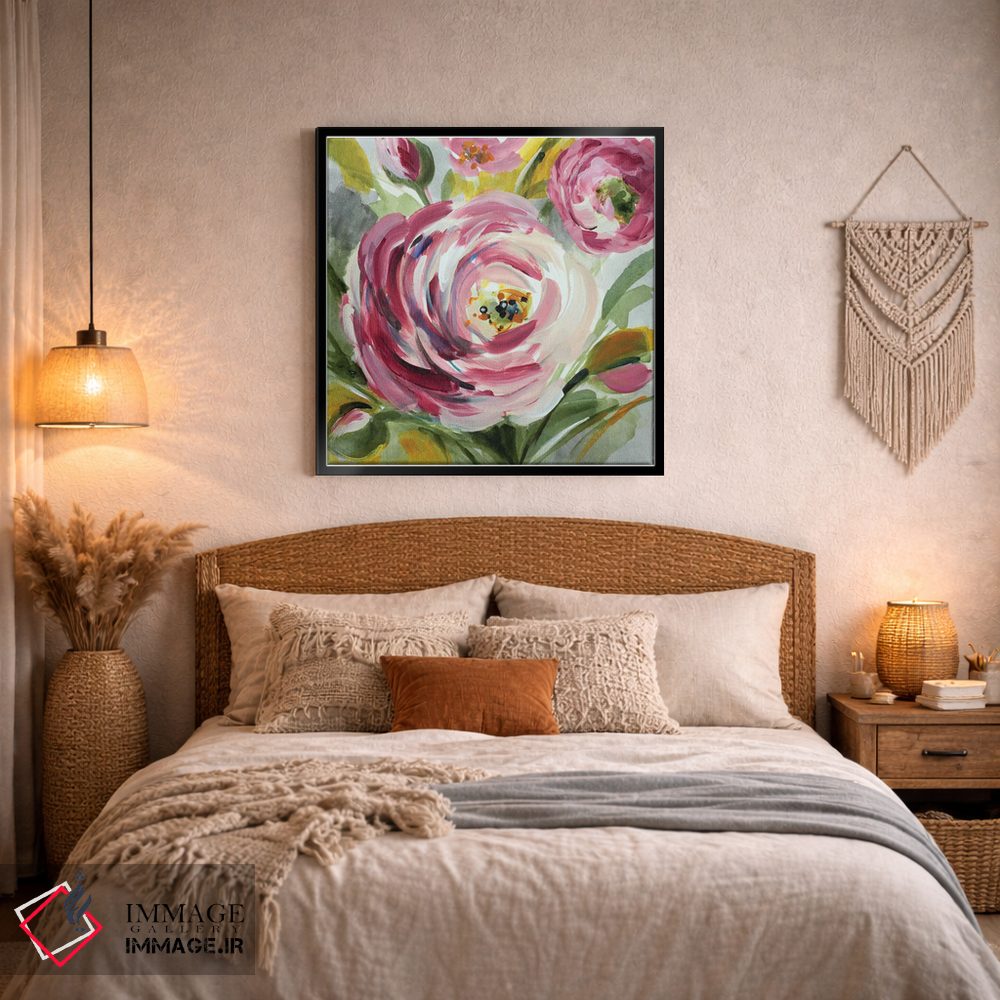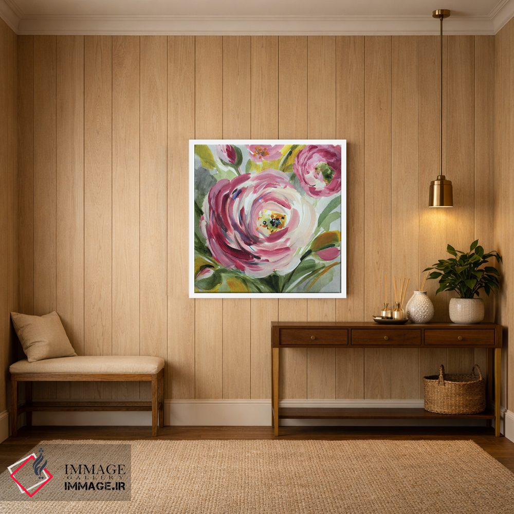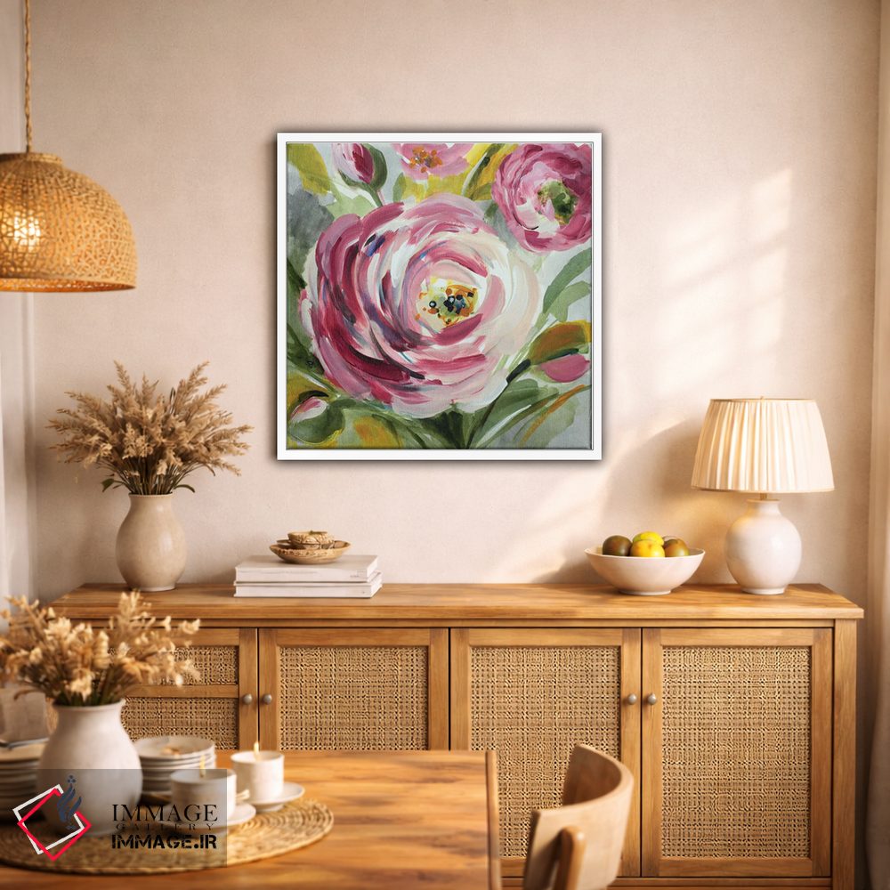 در «"رانوکولوس رز I"» اثرِ «لِینی لورث»، گلها و گیاهان به دیوار، روشناییِ ملایم و دلنشین میدهد؛ برای کنار میز آرایش یا کنسول انتخابی خوشسلیقه است. حضورش آرام است، اما بیاثر نیست.