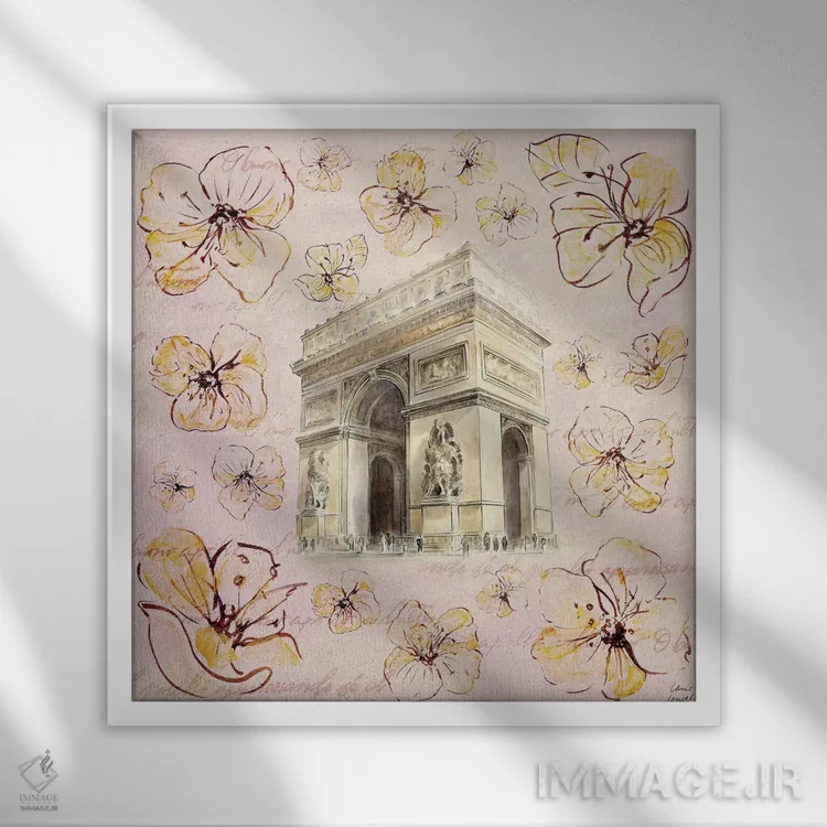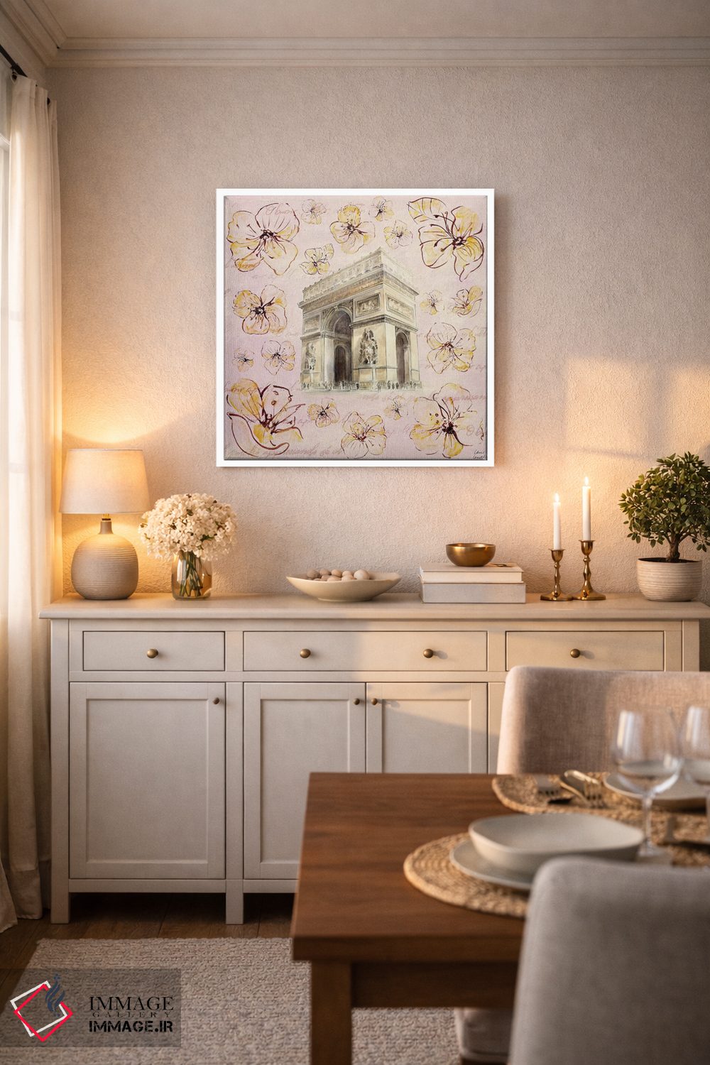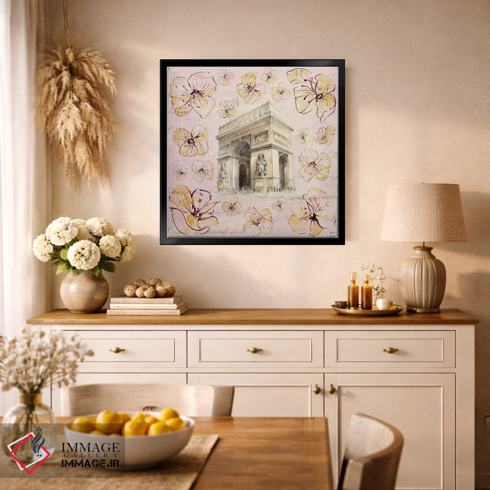 «"پاریس طلایی روی گلها II"» اثرِ «لِینی لورث» با حسِ این اثر، یک انتخاب دلنشین برای نرمتر کردن فضای خانه و اضافهکردن لطافت به دیوارهاست.