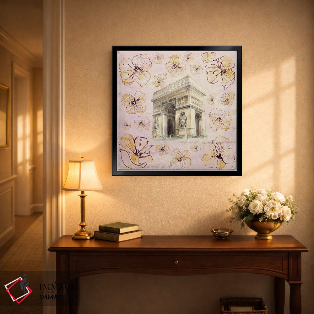 تابلو دکوراتیو "پاریس طلایی روی گل ها II" اثر لینی لورث