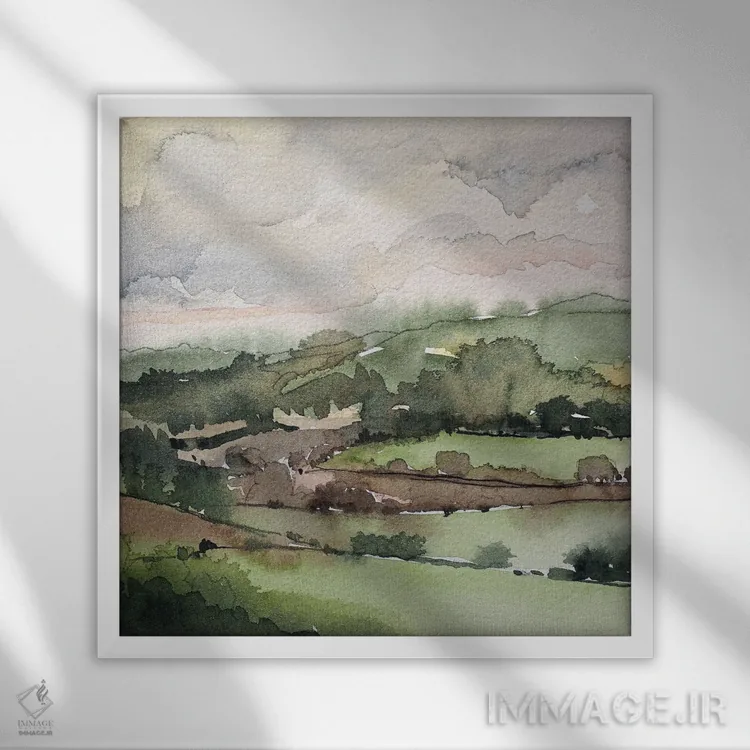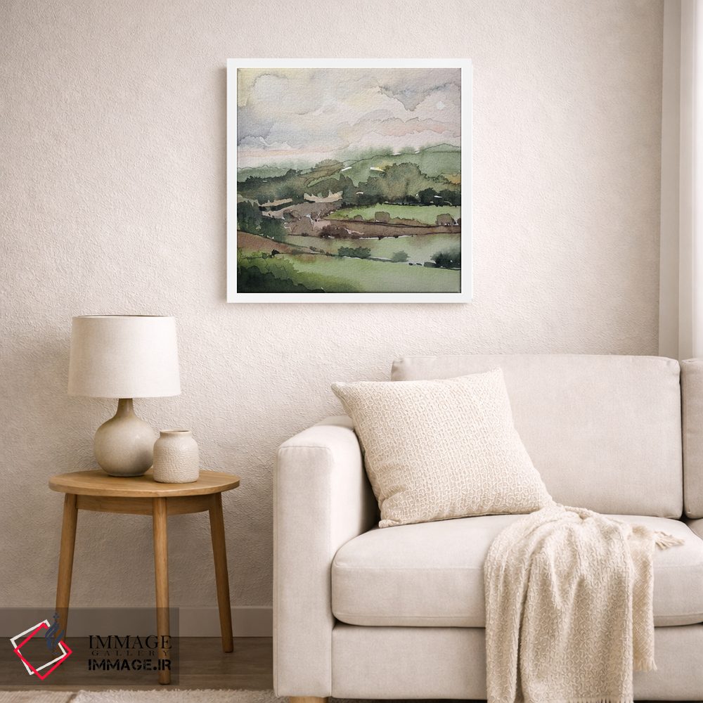 براساس پالت ترکیبی اثر، قاب بلوط روشن (چوبی) پیشنهاد اول است و استخوانی ملایم مکمل. برای سفارشهای پروژهای با ابعاد و قابهای اختصاصی با ایماژ در تماس باشید.