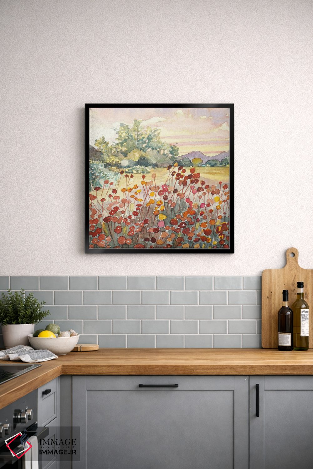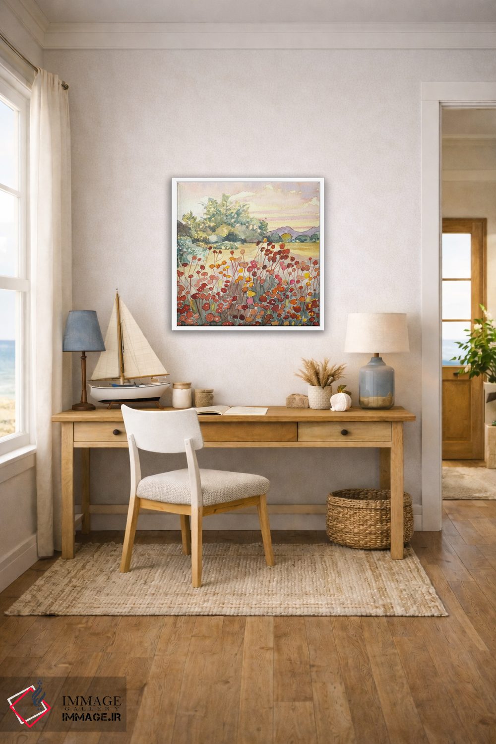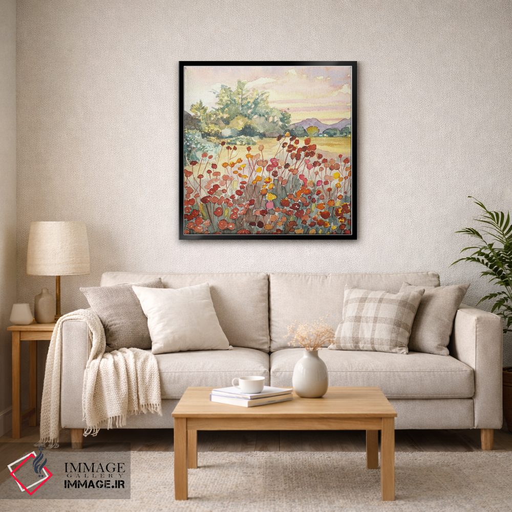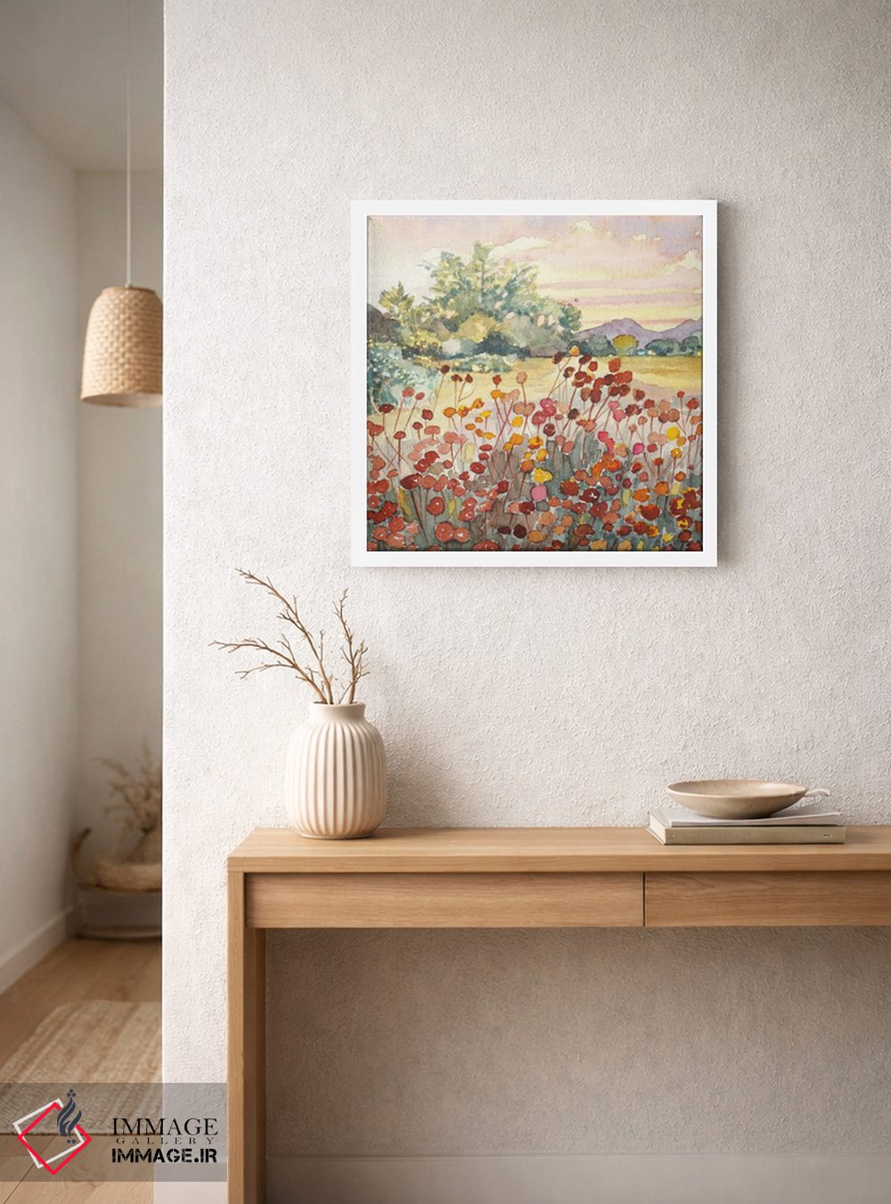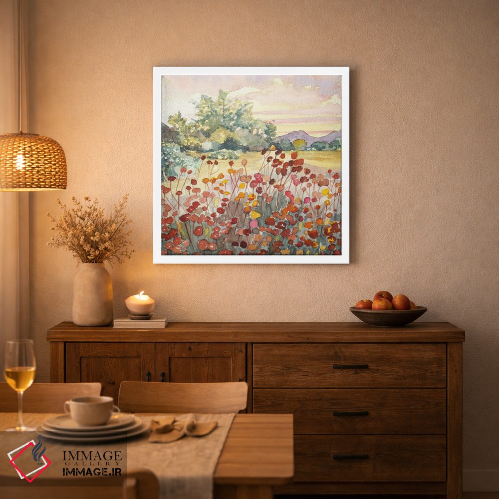 براساس پالت گرم اثر، قاب تیک گرم (چوبی) پیشنهاد اول است و مشکی مات (فریم متوسط) مکمل. برای سفارشهای پروژهای با ابعاد و قابهای اختصاصی با ایماژ در تماس باشید.
