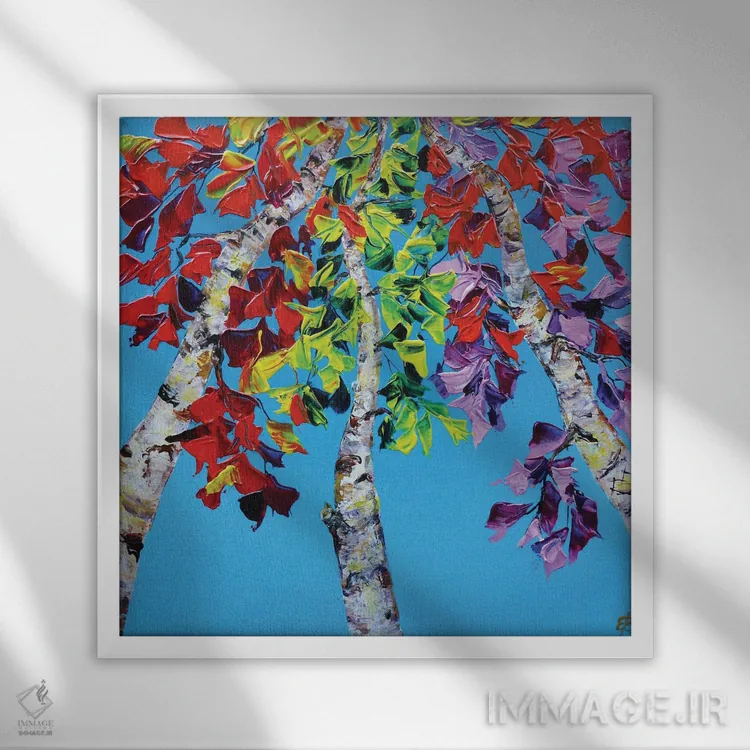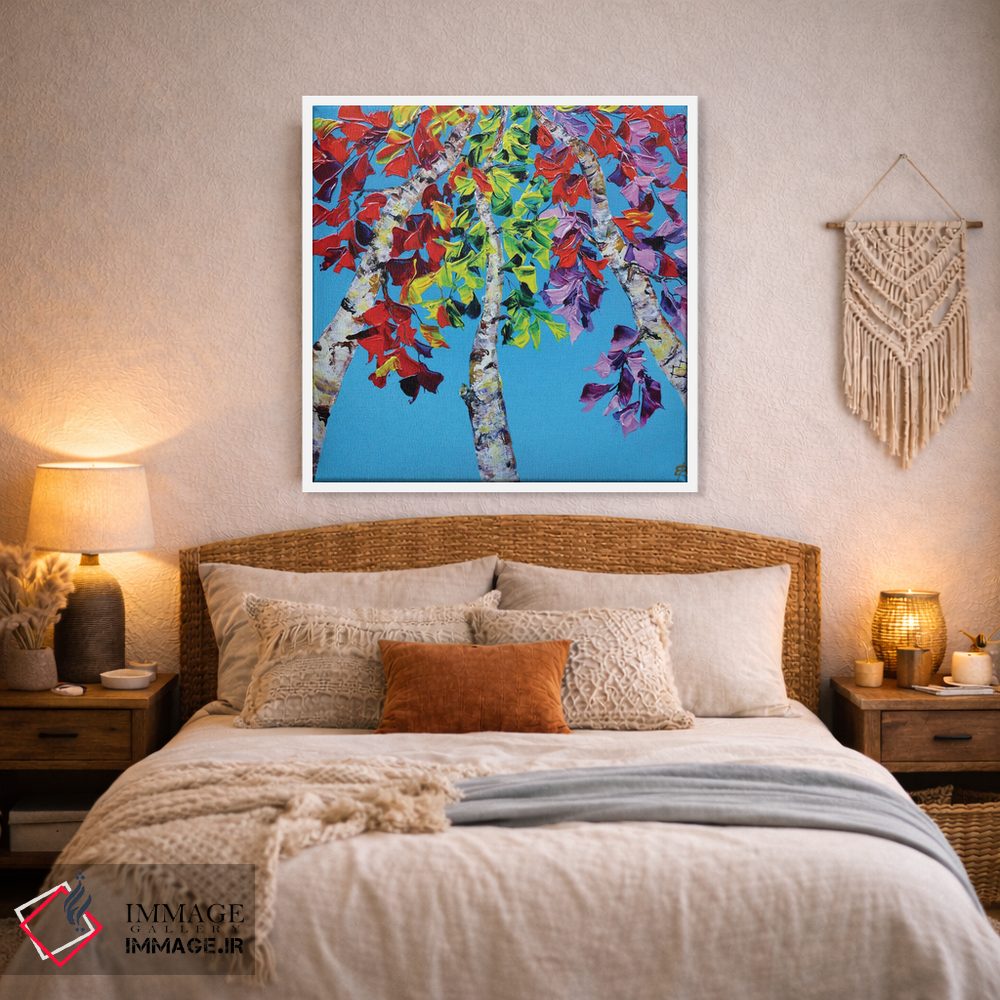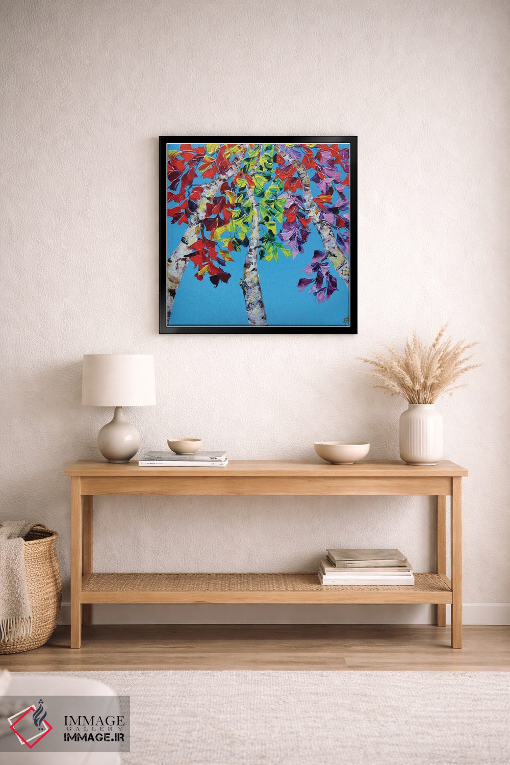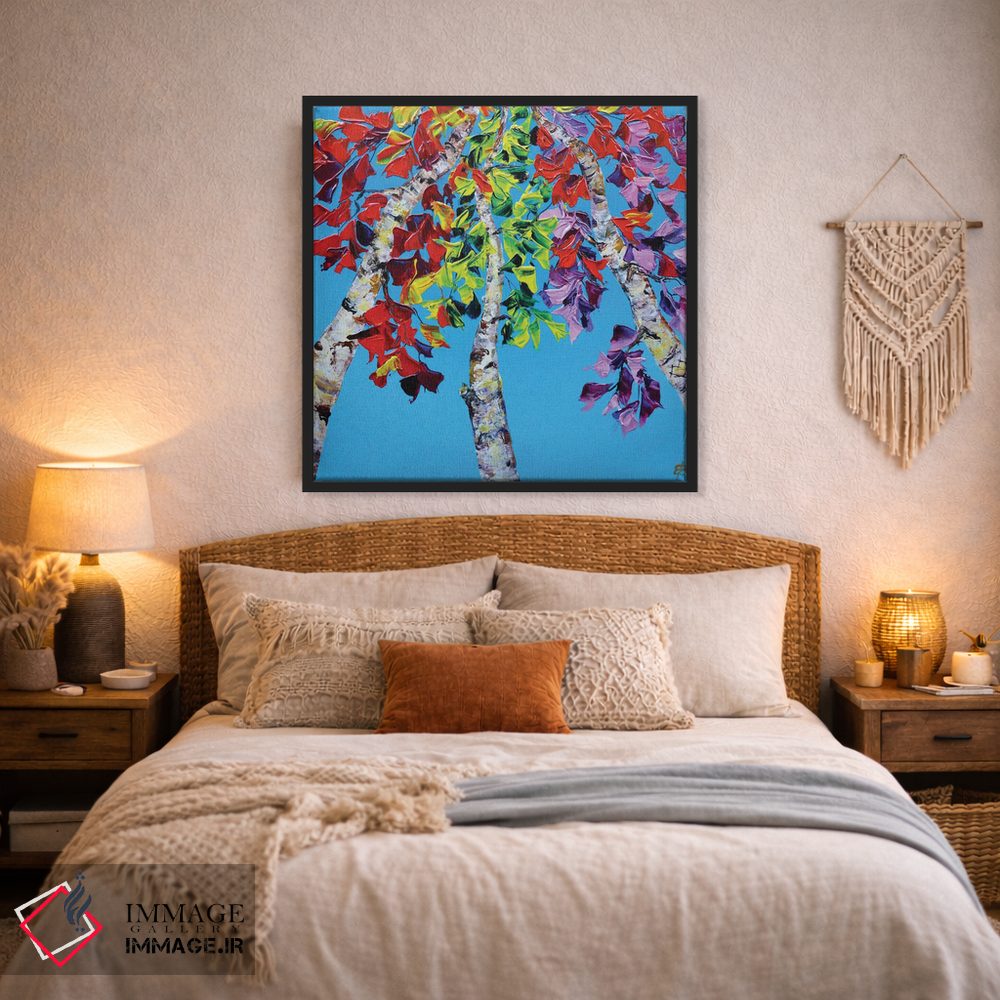 براساس پالت ترکیبی اثر، قاب تیک گرم (چوبی) پیشنهاد اول است و مشکی مات (فریم متوسط) مکمل. برای سفارشهای پروژهای با ابعاد و قابهای اختصاصی با ایماژ در تماس باشید.