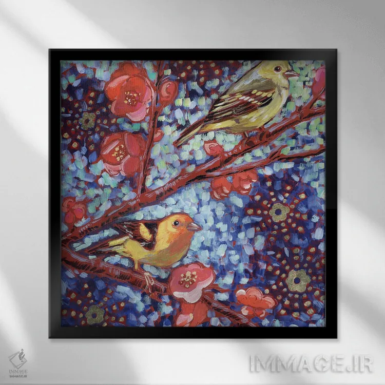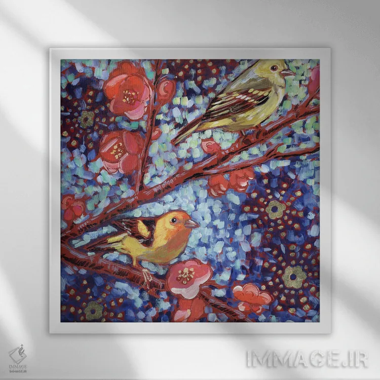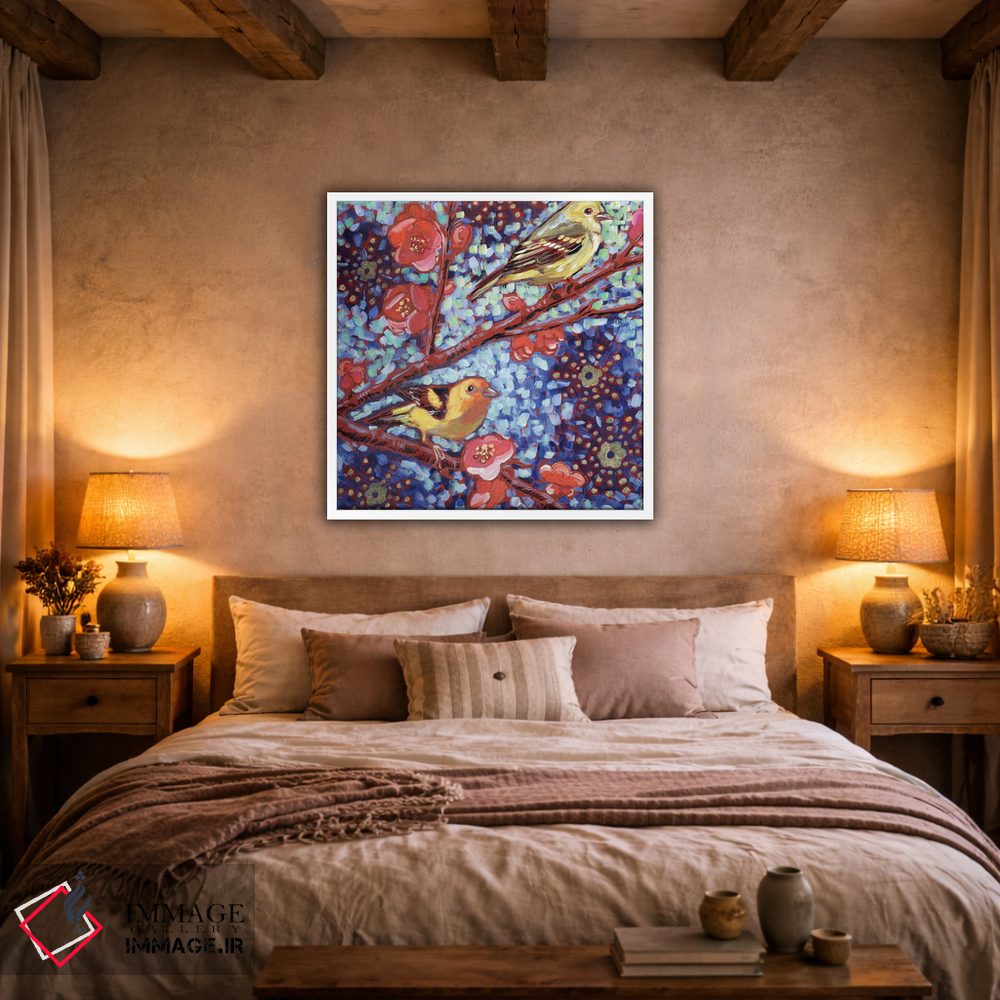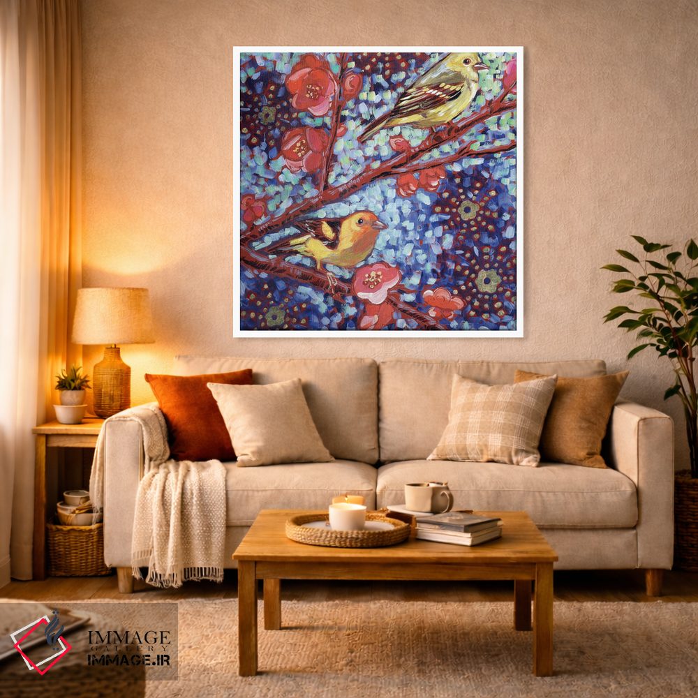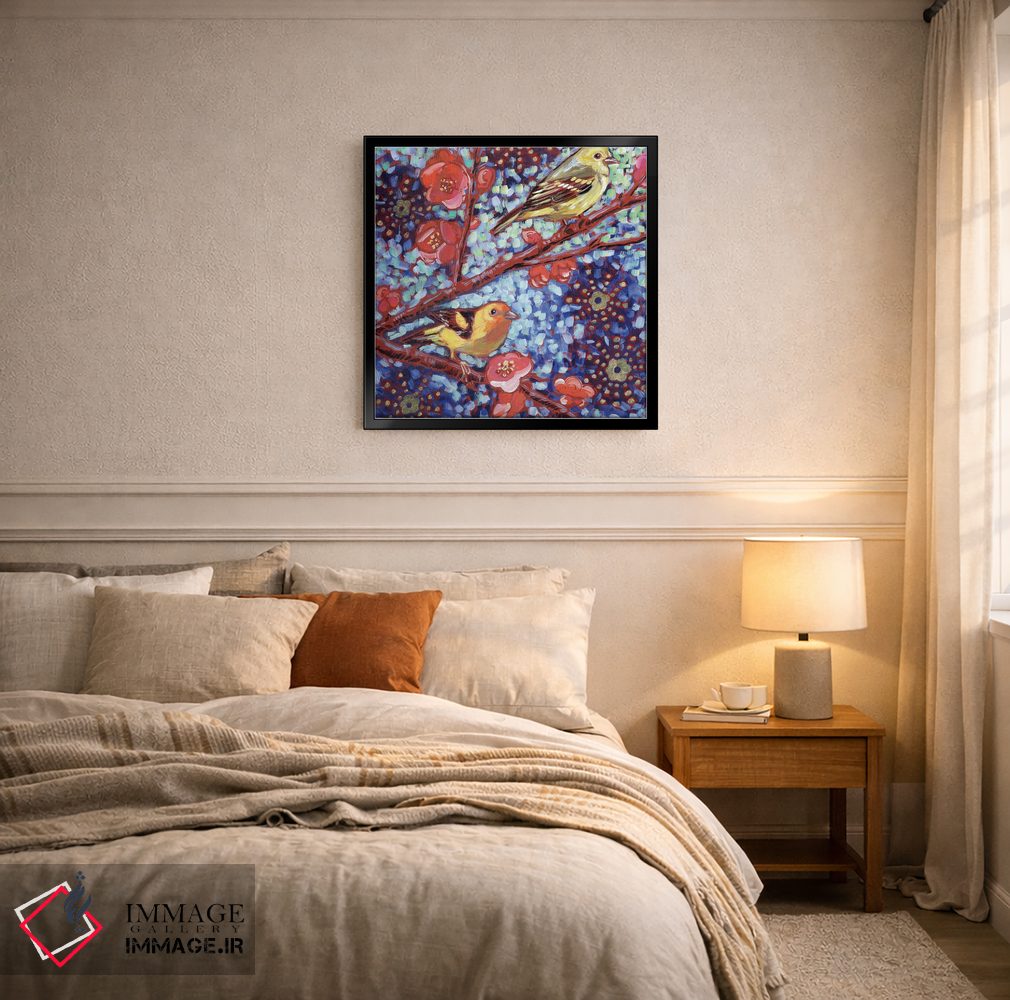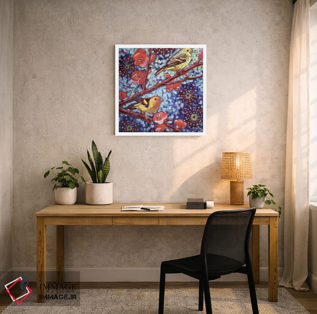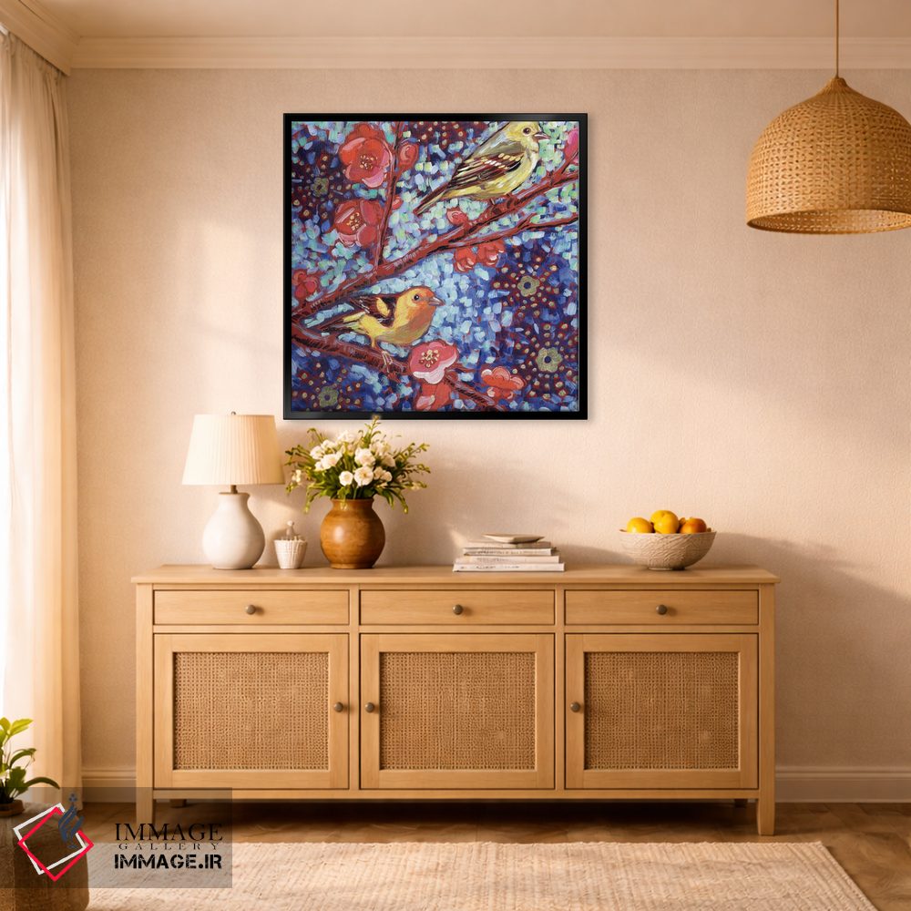 براساس پالت ترکیبی اثر، قاب تیک گرم (چوبی) پیشنهاد اول است و مشکی مات (فریم متوسط) مکمل. برای سفارشهای پروژهای با ابعاد و قابهای اختصاصی با ایماژ در تماس باشید.