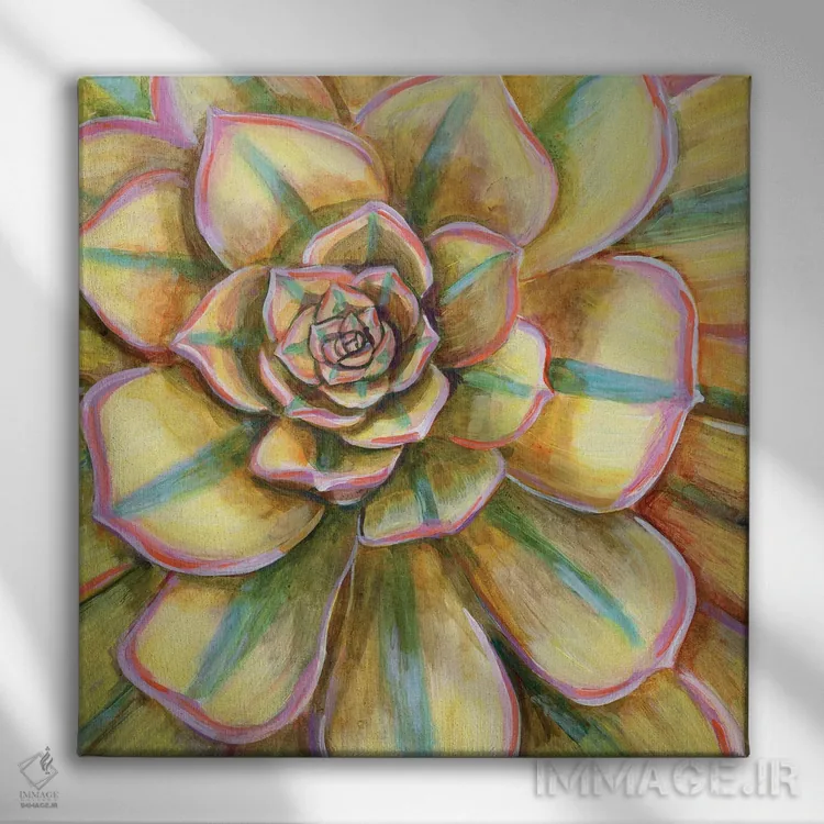 تابلو دکوراتیو ساکولنت خط دار زرد اثر لینه آ توبیاس - نمای نزدیک بافت بوم