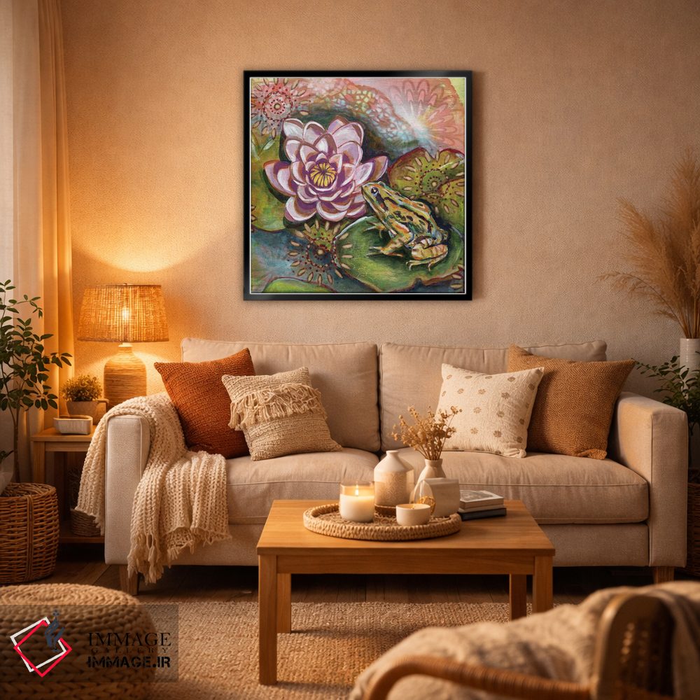 براساس پالت ترکیبی اثر، قاب تیک گرم (چوبی) پیشنهاد اول است و مشکی مات (فریم متوسط) مکمل. برای سفارشهای پروژهای با ابعاد و قابهای اختصاصی با ایماژ در تماس باشید.