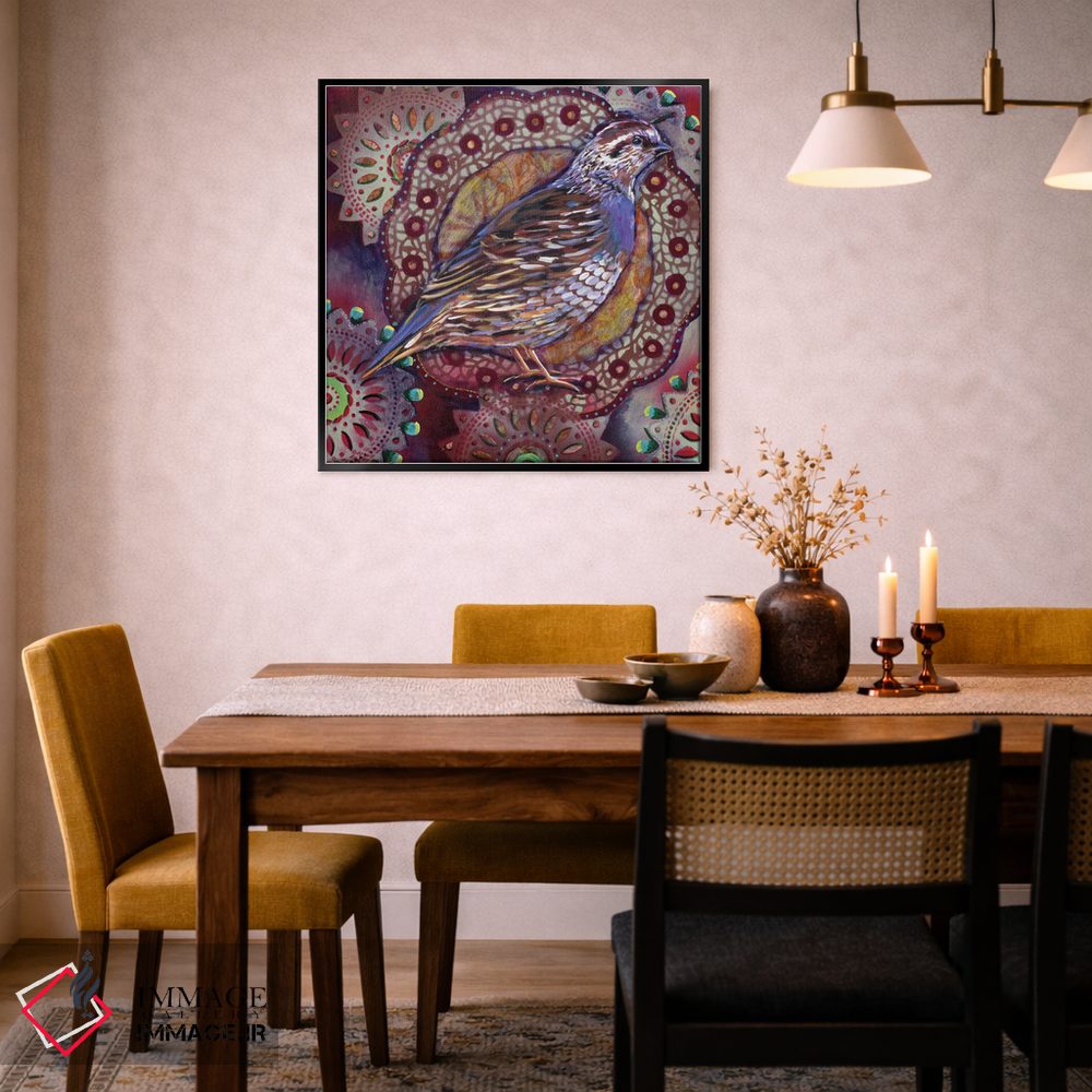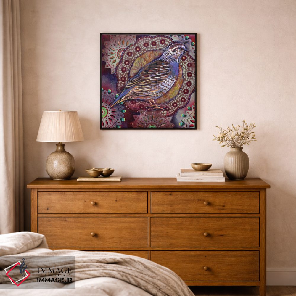برای اتاقی که به یک عنصر دوستداشتنی نیاز دارد، «بلدرچین» اثرِ «لینهآ توبیاس» به دیوار، انرژیِ نرم و زنده میدهد؛ برای نشیمنهای خانوادگی انتخابی خوشسلیقه است. به دیوار، قصه میدهد—اما قصهای آرام و شیک.
