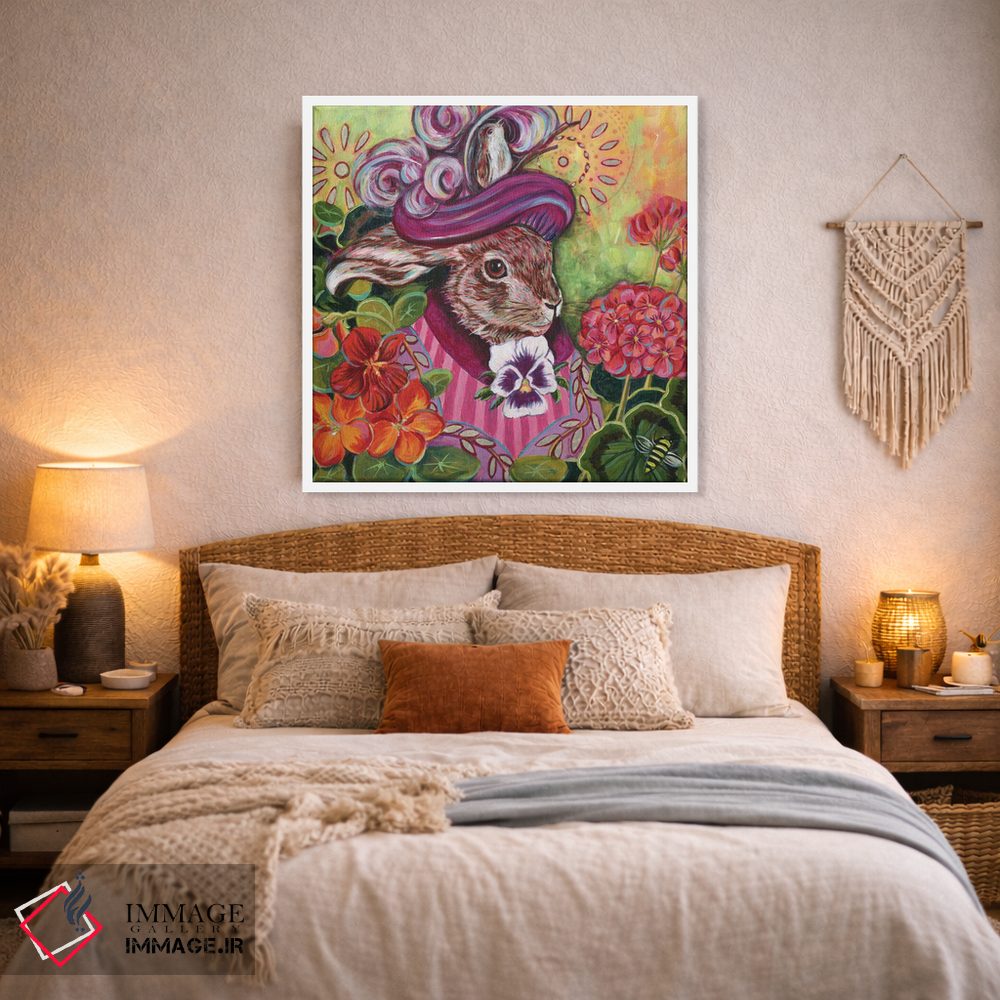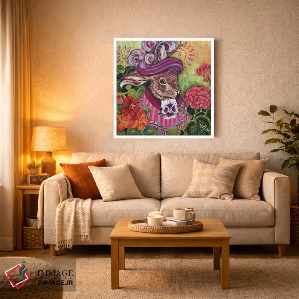 برای دیواری که میخواهید نرمتر دیده شود، «خرگوش در باغ روستایی» اثرِ «لینهآ توبیاس» حس فصل را آرام وارد فضا میکند؛ برای خانههایی با نور طبیعی انتخابی خوشسلیقه است. در کنار گیاهان آپارتمانی، هماهنگتر هم میشود.
