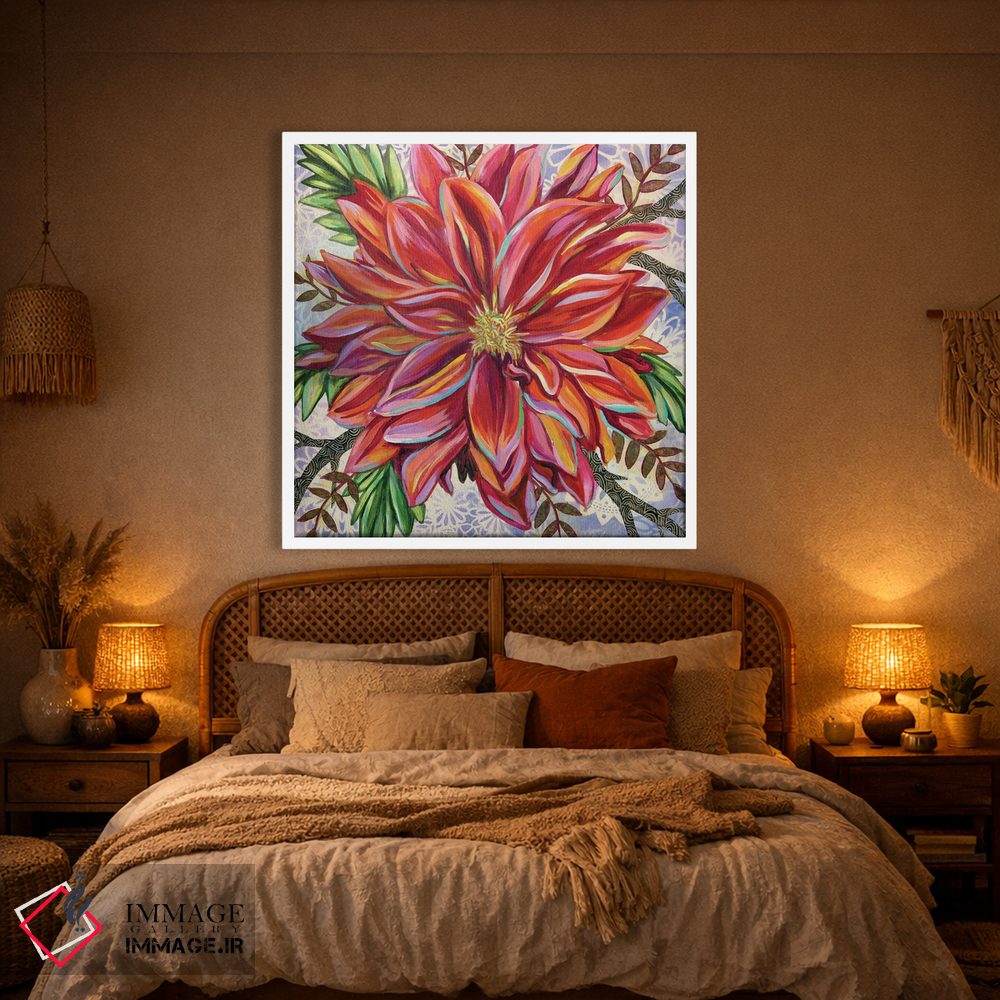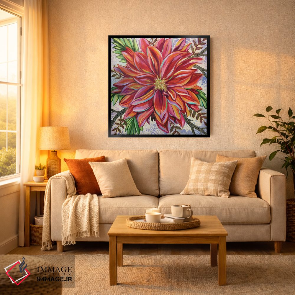 برای اتاق خواب و نشیمنهای آرام، «داهلیای قرمز» اثرِ «لینهآ توبیاس» چیدمان را از خشکی بیرون میآورد؛ برای هدیه دادن انتخابی خوشسلیقه است. حضورش آرام است، اما بیاثر نیست.