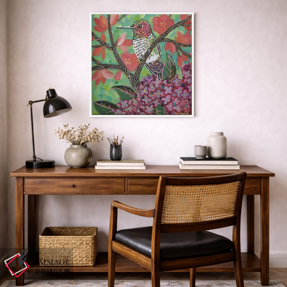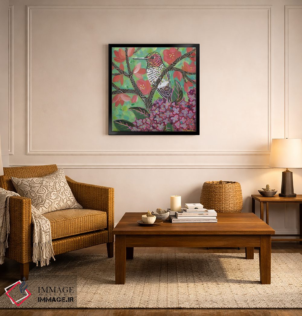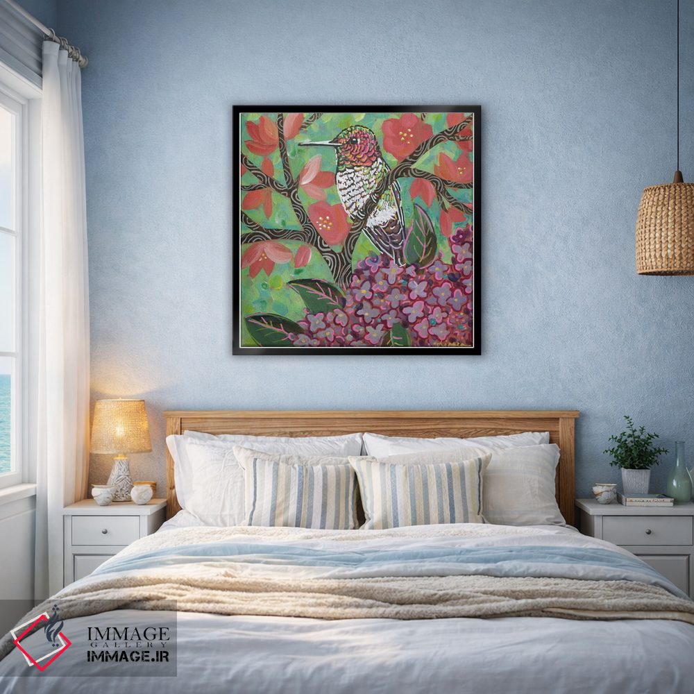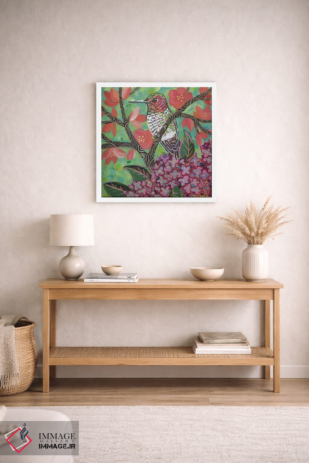 اگر میخواهید دیوار کمی سرزندگیِ محترمانه داشته باشد، «مرغ مگسخوار بهاری II» اثرِ «لینهآ توبیاس» فضا را صمیمیتر و دعوتکنندهتر نشان میدهد، برای اتاق کودک (بدون لحن کودکانه) گزینهٔ مناسبیست. برای دیوار گالریوار هم گزینهٔ خوبیست.