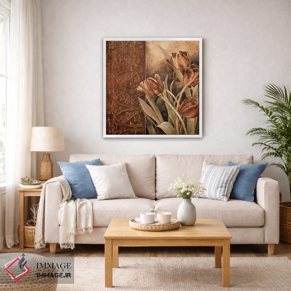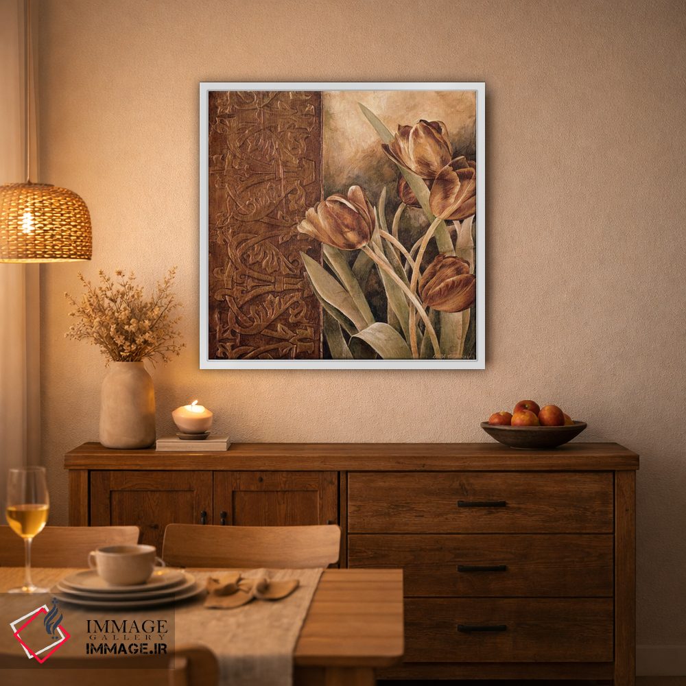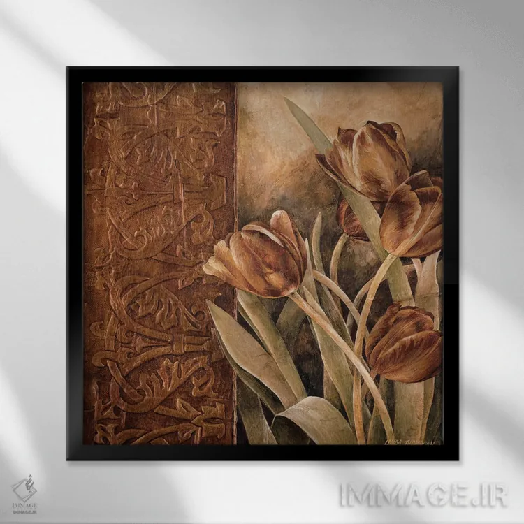 براساس پالت گرم اثر، قاب تیک گرم (چوبی) پیشنهاد اول است و مشکی مات (فریم متوسط) مکمل. برای سفارشهای پروژهای با ابعاد و قابهای اختصاصی با ایماژ در تماس باشید.