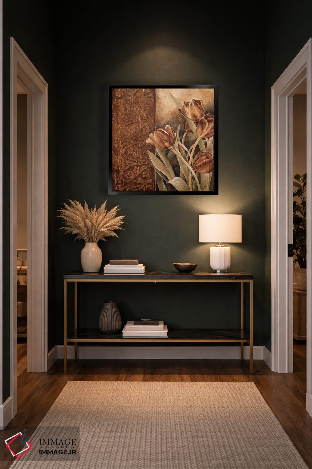 اگر فضا مینیمال است، قرمز را در یک تابلو کوچک مکمل اضافه کنید تا نگاه به سمت اثر هدایت شود. اگر فضا شلوغ است، فقط یک نقطهٔ رنگی بس است.