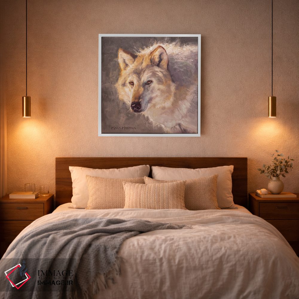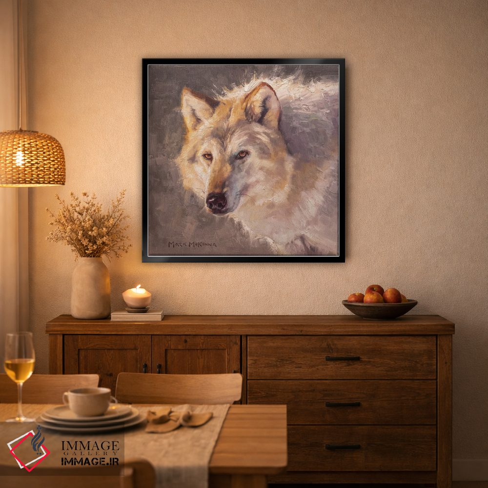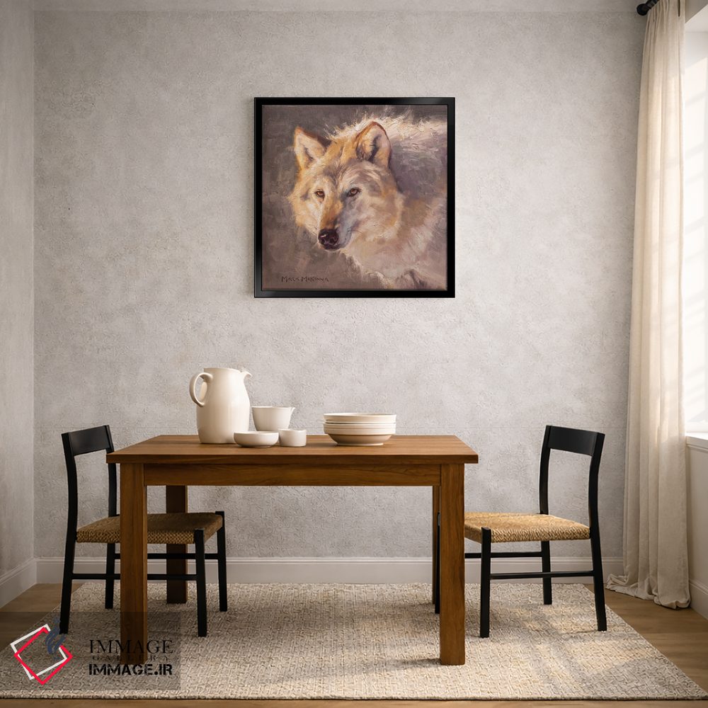 براساس پالت گرم اثر، قاب بلوط روشن (چوبی) پیشنهاد اول است و استخوانی ملایم مکمل. برای سفارشهای پروژهای با ابعاد و قابهای اختصاصی با ایماژ در تماس باشید.