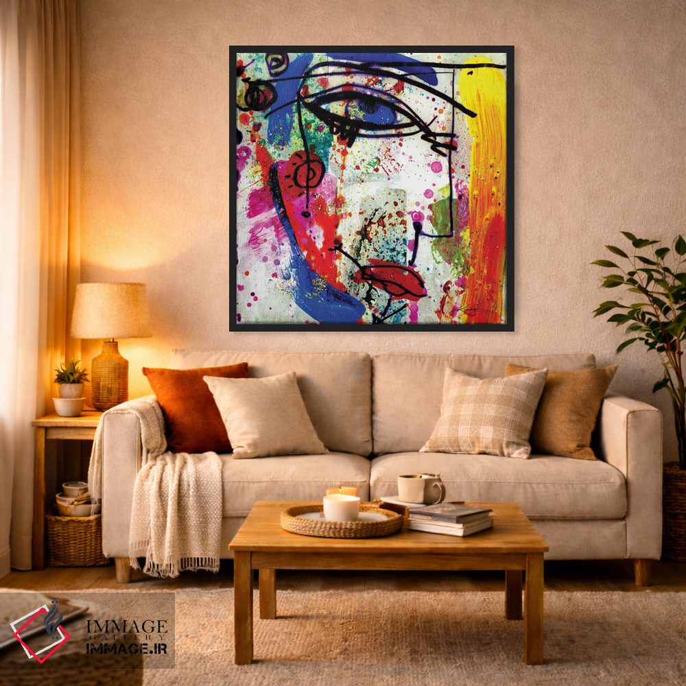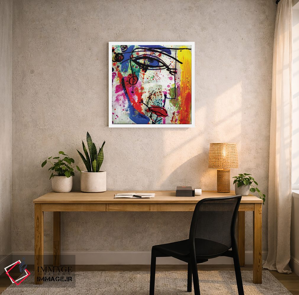 براساس پالت ترکیبی اثر، قاب تیک گرم (چوبی) پیشنهاد اول است و مشکی مات (فریم متوسط) مکمل. برای سفارشهای پروژهای با ابعاد و قابهای اختصاصی با ایماژ در تماس باشید.