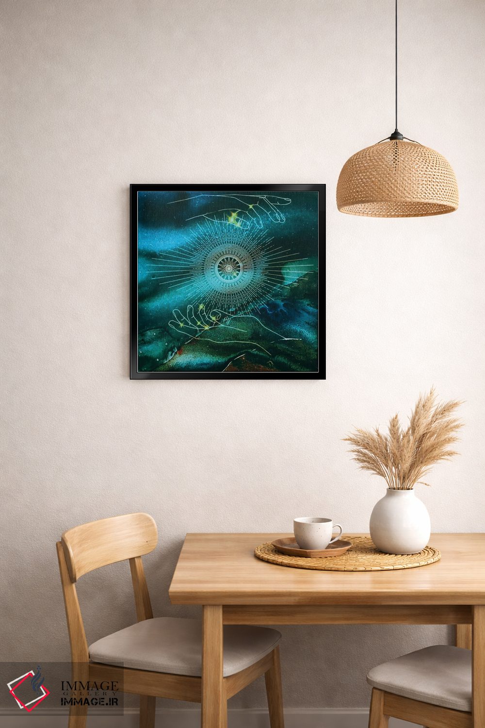 براساس پالت سرد اثر، قاب سفید مات (فریم باریک) پیشنهاد اول است و نقرهای برسخورده (متالیک) مکمل. برای سفارشهای پروژهای با ابعاد و قابهای اختصاصی با ایماژ در تماس باشید.