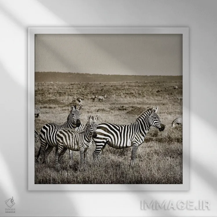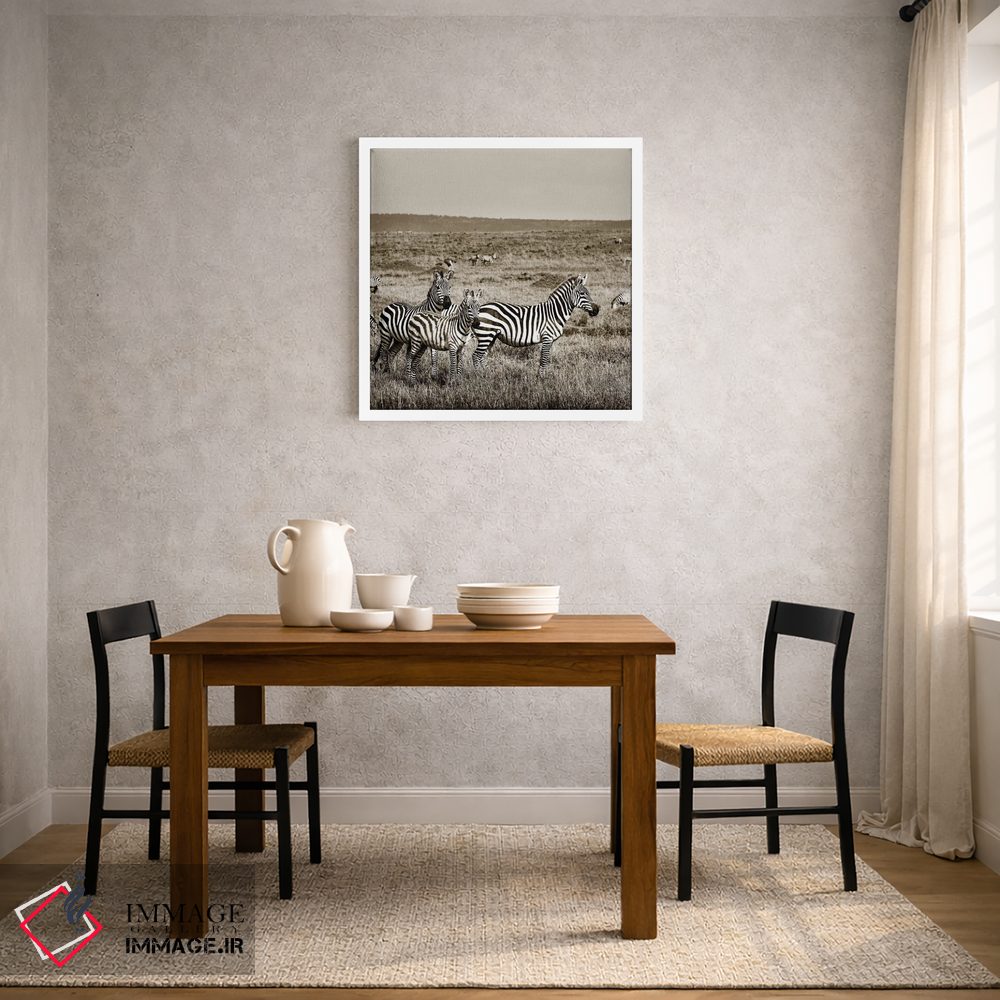 برای دکورهای صمیمی، «خانواده متحد گورخرها» اثرِ «کلاوس تیدگه» فضا را صمیمیتر و دعوتکنندهتر نشان میدهد؛ برای دکورهایی با رنگهای خنثی انتخابی خوشسلیقه است. حسش صمیمی است، اما کیفیتش جدی و خوشپرداخت.