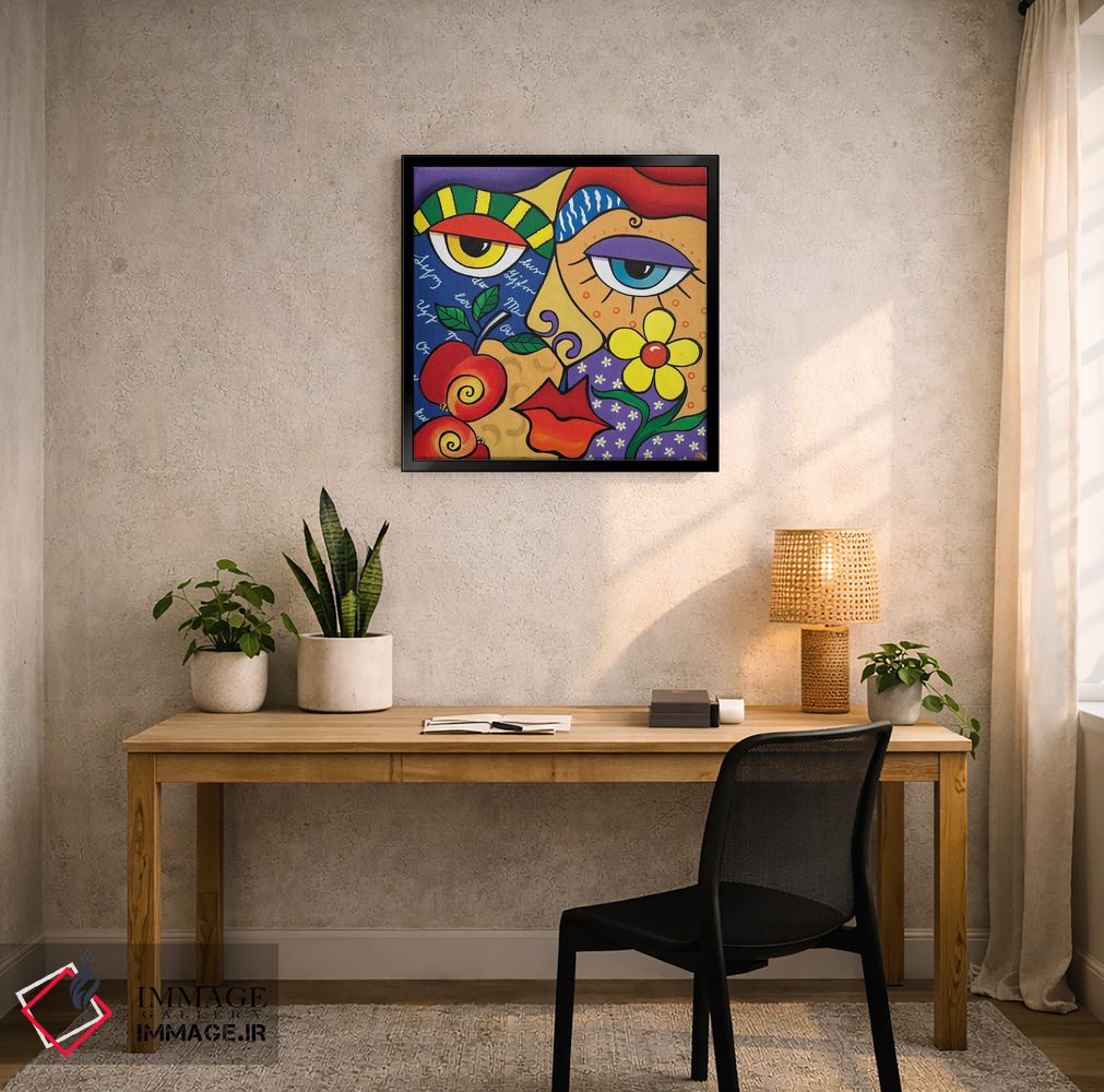 براساس پالت ترکیبی اثر، قاب تیک گرم (چوبی) پیشنهاد اول است و مشکی مات (فریم متوسط) مکمل. برای سفارشهای پروژهای با ابعاد و قابهای اختصاصی با ایماژ در تماس باشید.