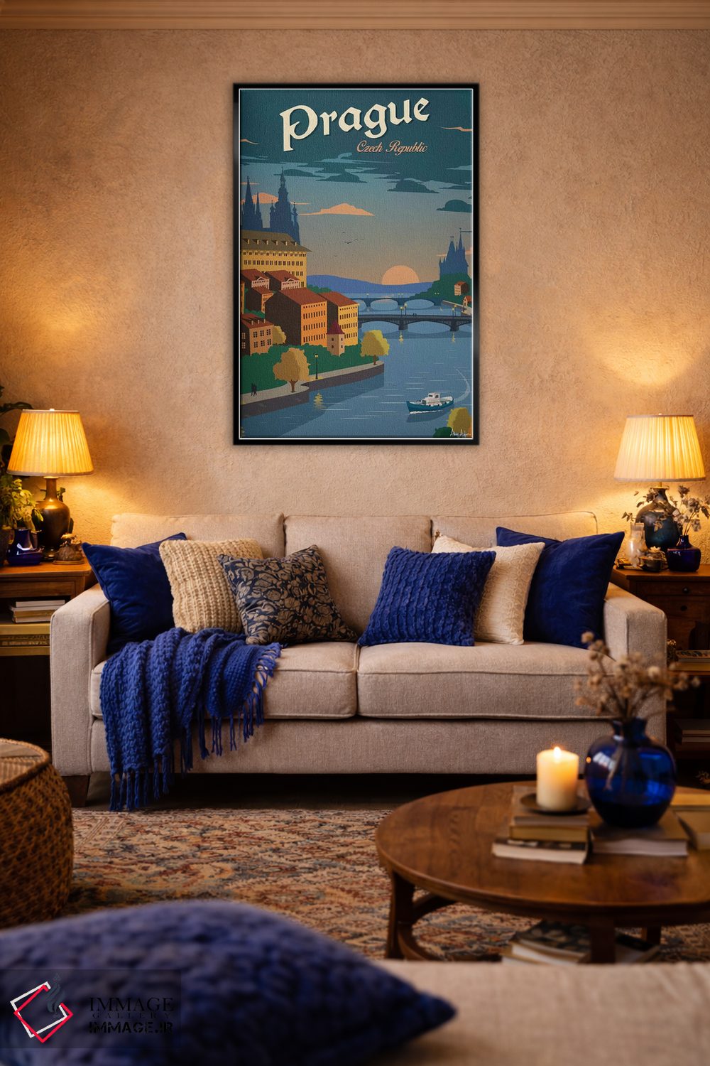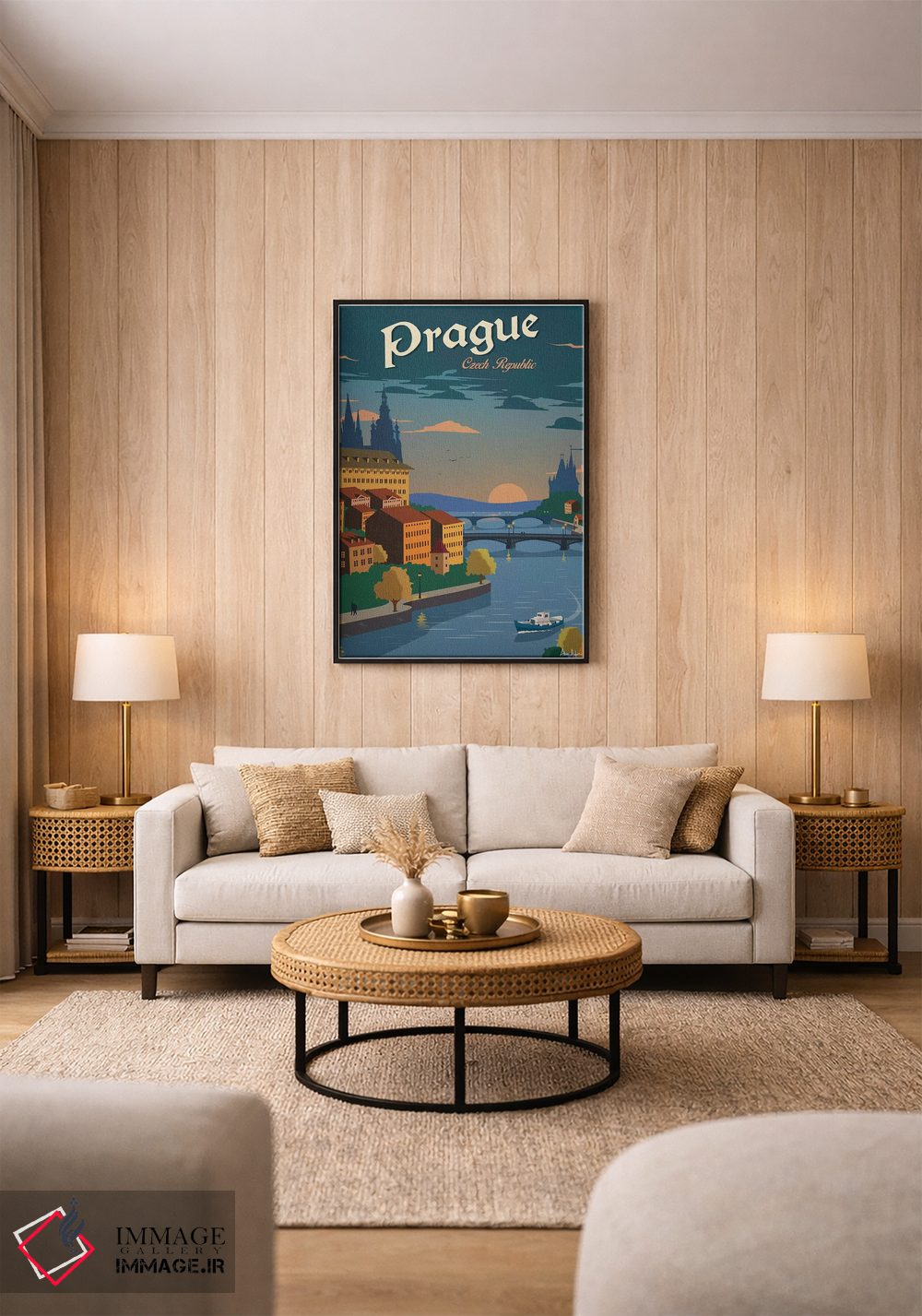 برای ترکیب با گلدانهای سبز، پارچههای ساده و نور گرم، «پراگ» اثرِ «ایدیااستورم استودیوز (استودیو هنری)» با موضوعِ این اثر انتخابی هماهنگ است.