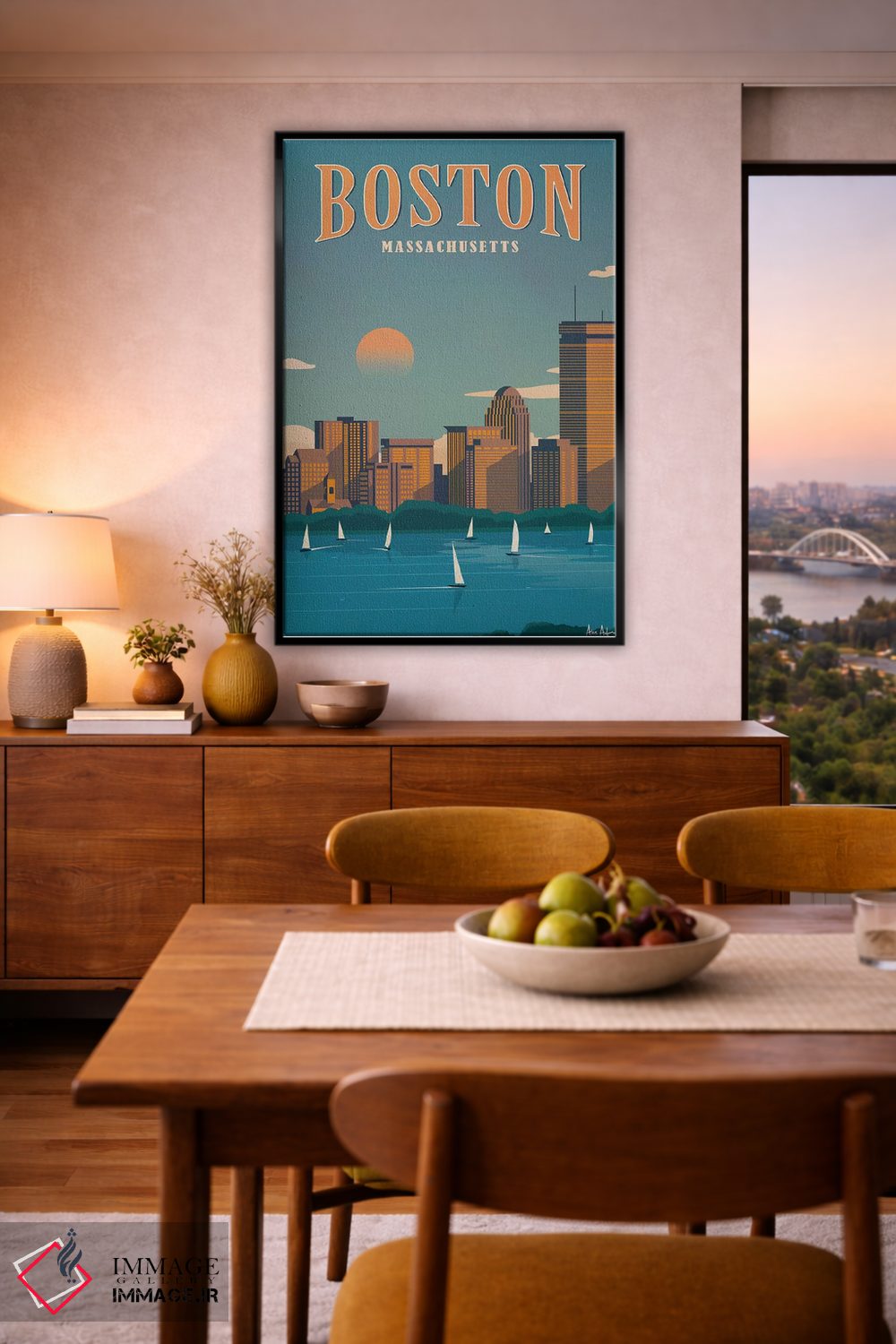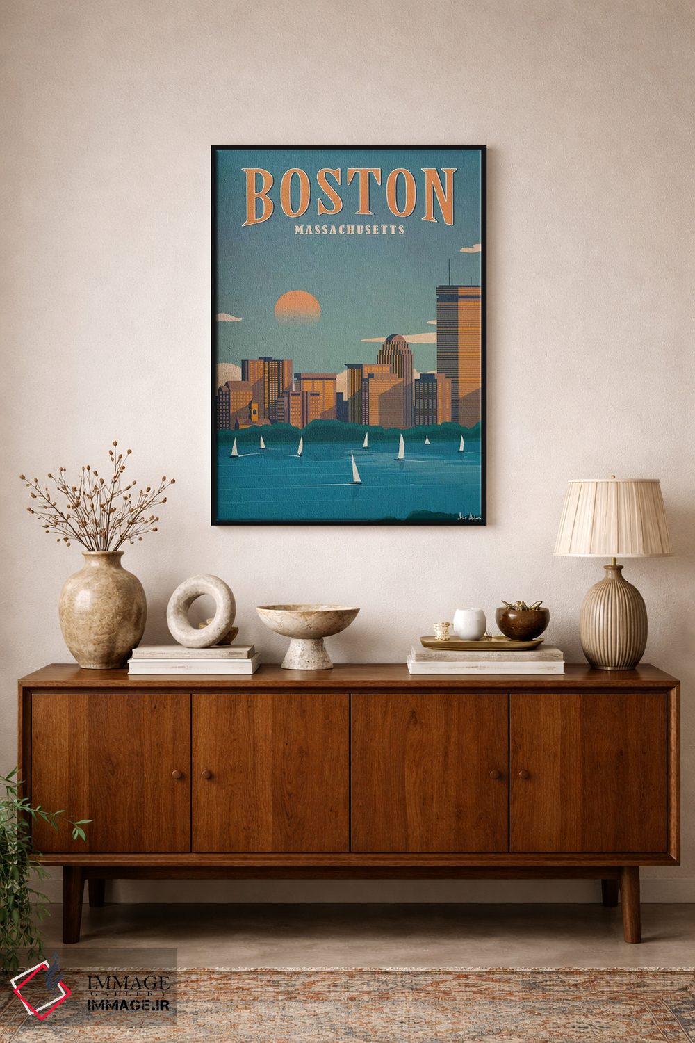 تابلو دکوراتیو بوستون اثر ایدیااستورم استودیوز - نمای روبه‌رو روی دیوار