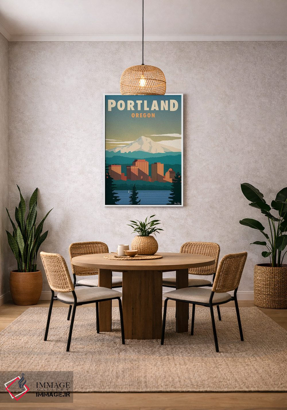 «پورتلند» اثرِ «ایدیااستورم استودیوز (استودیو هنری)» یک قاب دکوراتیوِ گرم و دلنشین است؛ این اثر در اجرای پرداختِ هنری، فضا را نرمتر و صمیمیتر نشان میدهد.