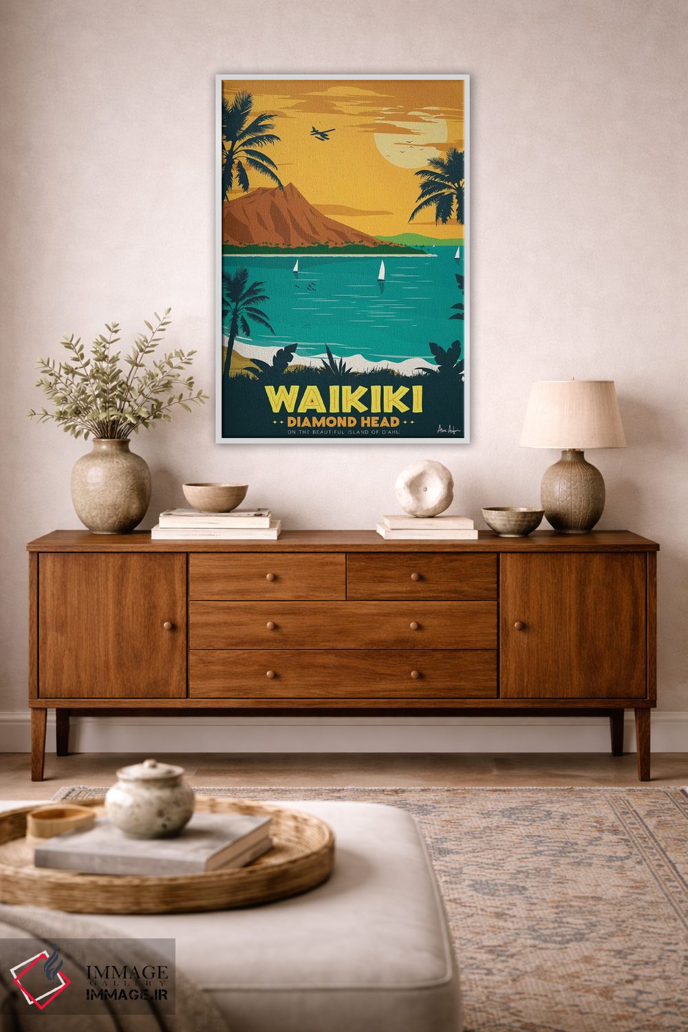 «وایکیکی» اثرِ «ایدیااستورم استودیوز (استودیو هنری)» انتخابی مناسب برای کسانیست که از پوسترهای متنی و طراحی معاصر لذت میبرند.