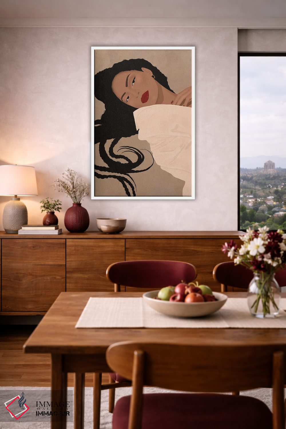 بوم گالری ایماژ نسخهی چیدماناتیوِ باکیفیت از یک اثر هنری است؛ روی کنواس سفیدِ یکدست و بدون اسید با چاپ هنریِ استاندارد جیکلی برای بازآفرینی حرفهای با جوهرهای آرشیویِ حرفهای برای لایههای رنگی خواناتر؛ خروجی، عمق رنگ و پرداختی است که «با چشم» دیده میشود. کلافکشی مرتب و یراق نصب استاندارد، تجربهی نصب را ساده میکند. برای قابهای متنوعتر و اندازه سفارشی، تیم ایماژ راهنماییتان میکند.