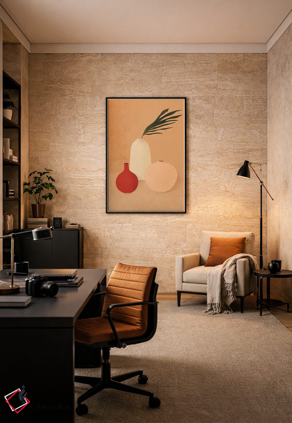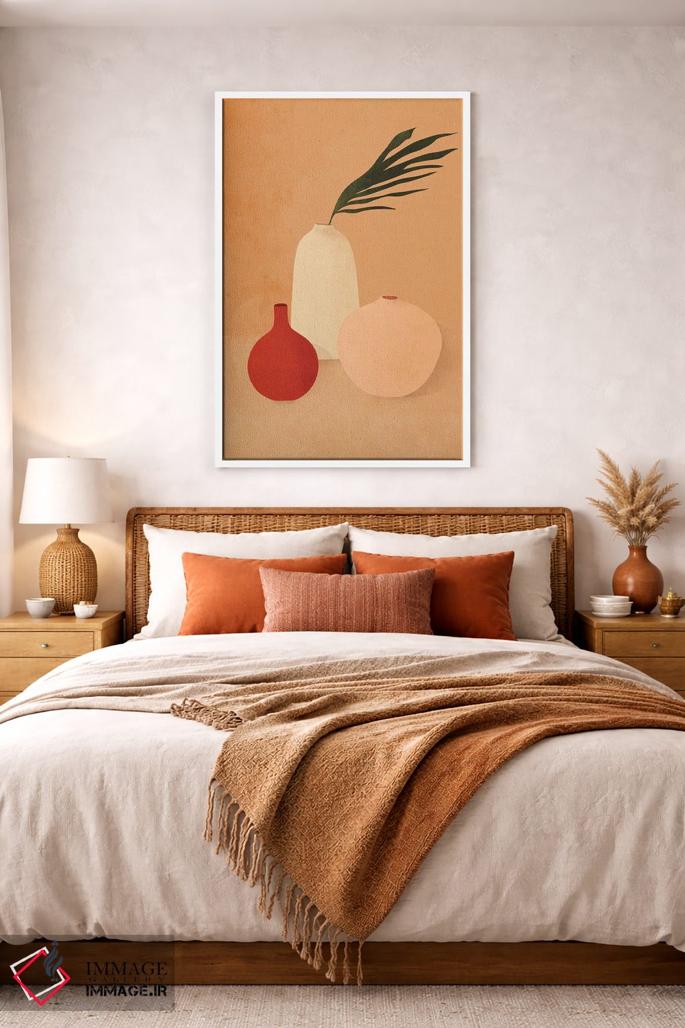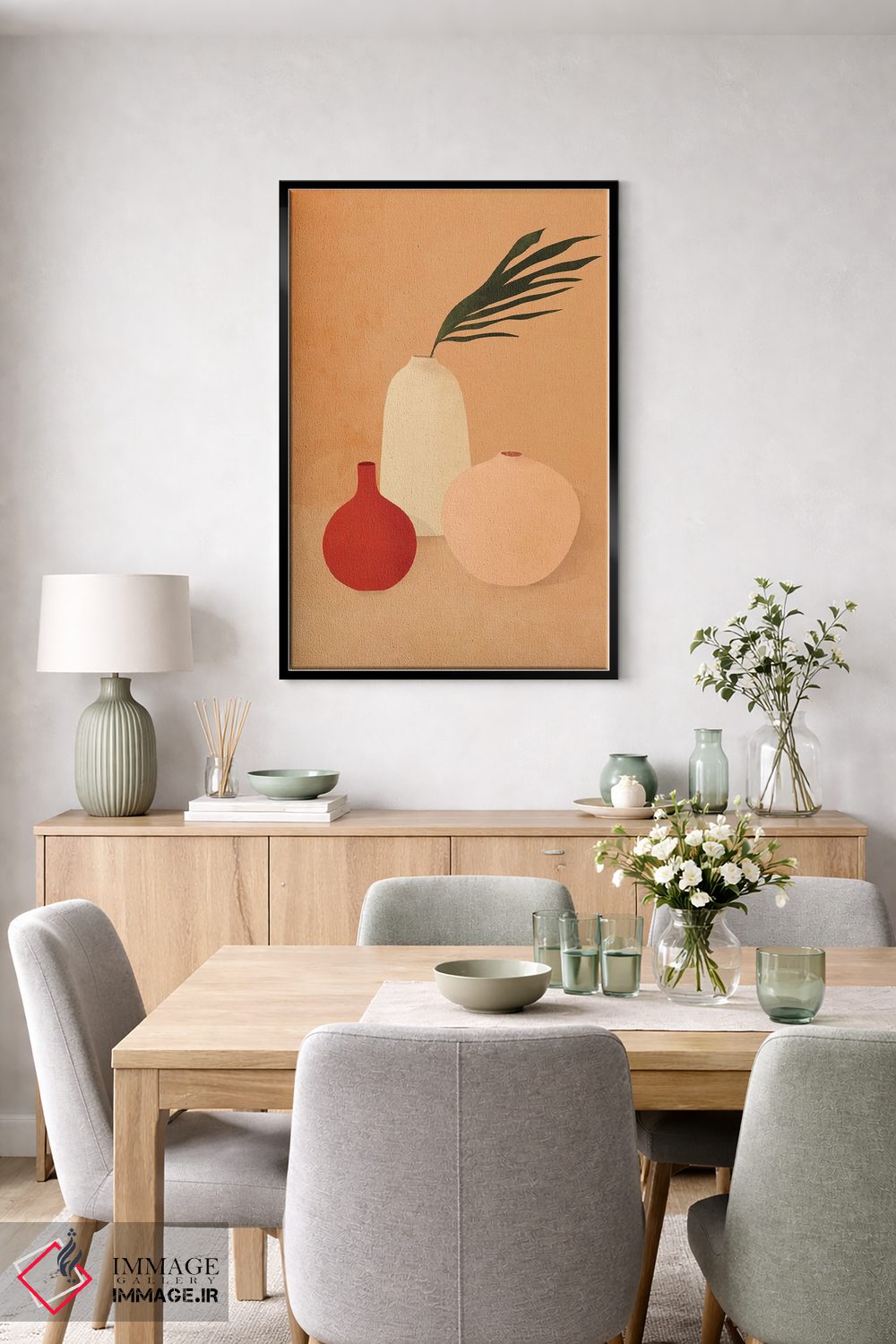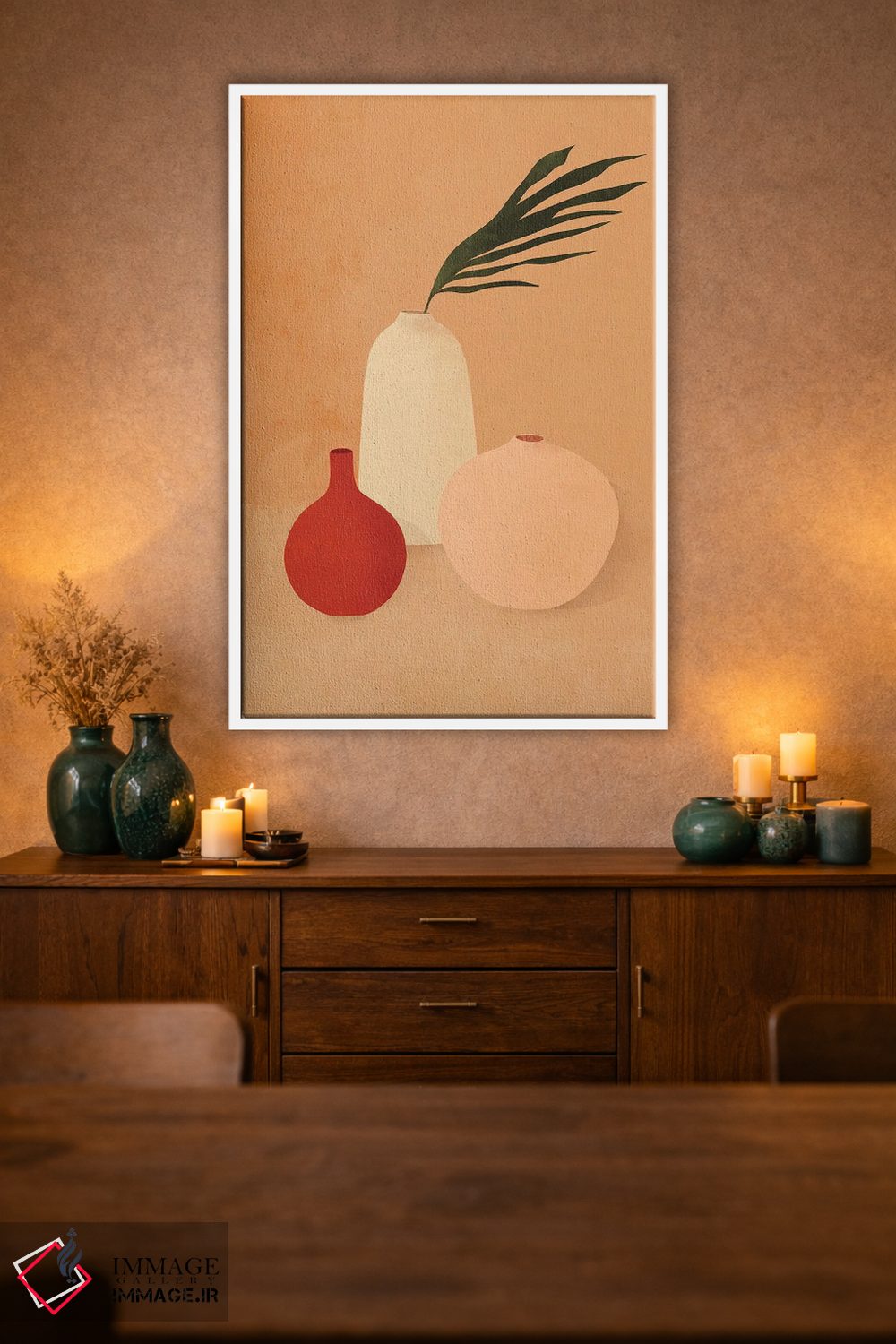 این اثر با عنوان «گلدانهای بوهو (سبک بوهمی)» اثرِ «ایتسفانیهو (هنرمند دیجیتال)» فضا را نرمتر و مهماننوازتر میکند؛ برای کافهها و فضاهای آرام انتخابی خوشسلیقه است. فضا را شلوغ نمیکند؛ فقط لطیفترش میکند.