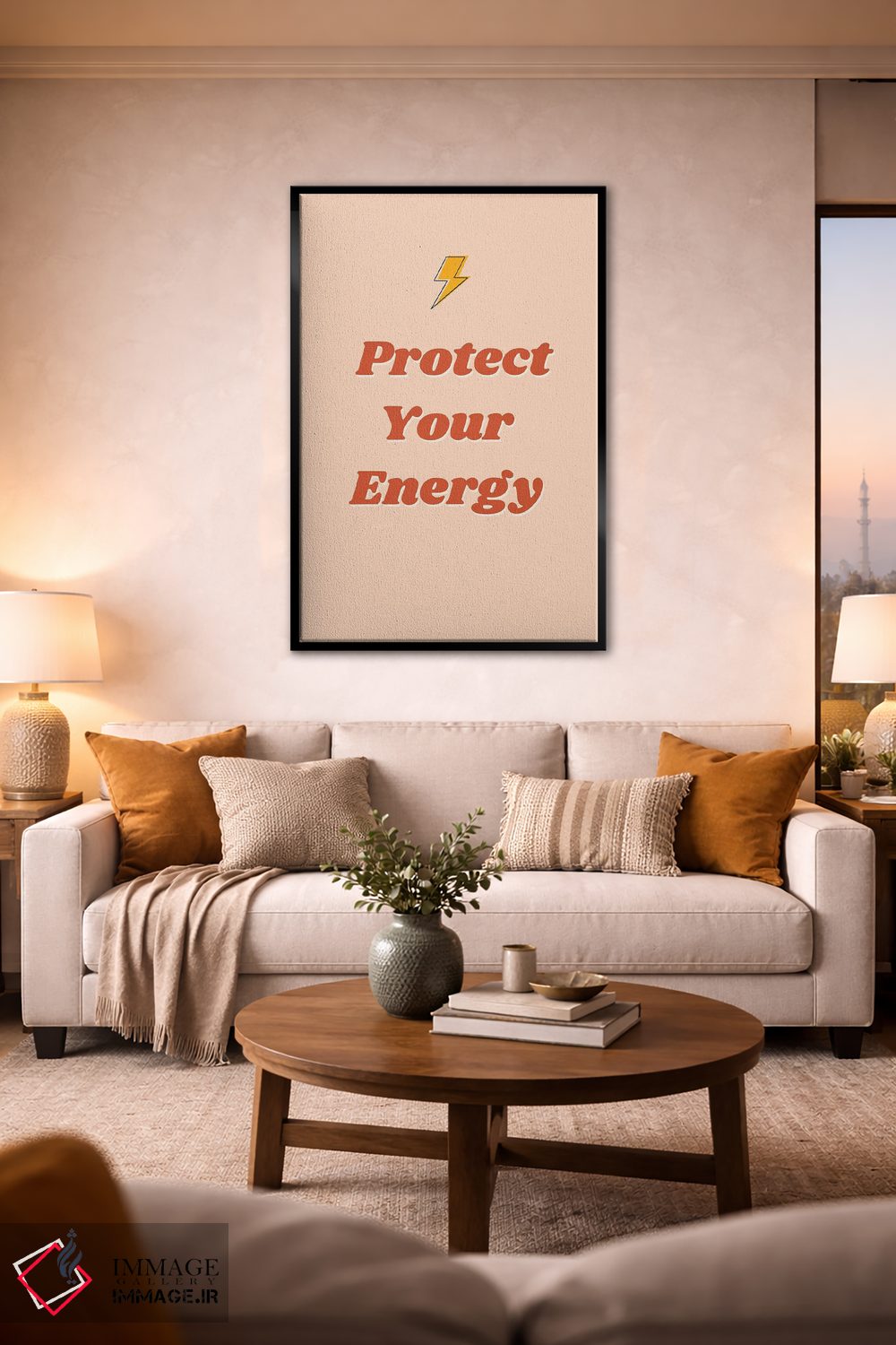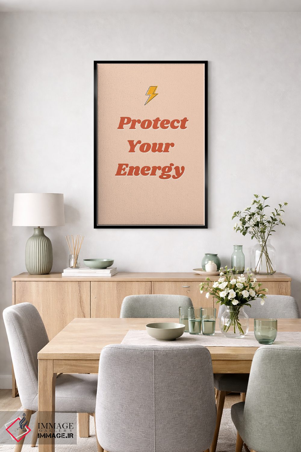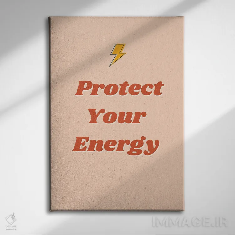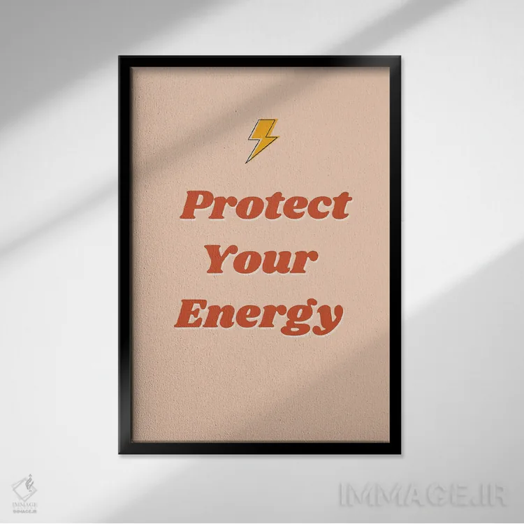 در «انرژی خود را محافظت کن» اثرِ «ایتسفانیهو (هنرمند دیجیتال)»، تاکید روی خوانایی و ریتم حروف است؛ مناسب برای فضاهای پررفتوآمد مثل راهرو و ورودی.