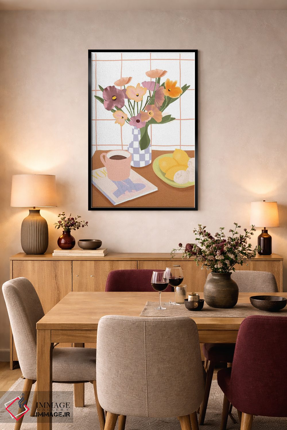 «صبحانه انگلیسی» اثرِ «ایتسفانیهو (هنرمند دیجیتال)» برای فضاهای شیک و استایلمحور انتخابی جذاب است.