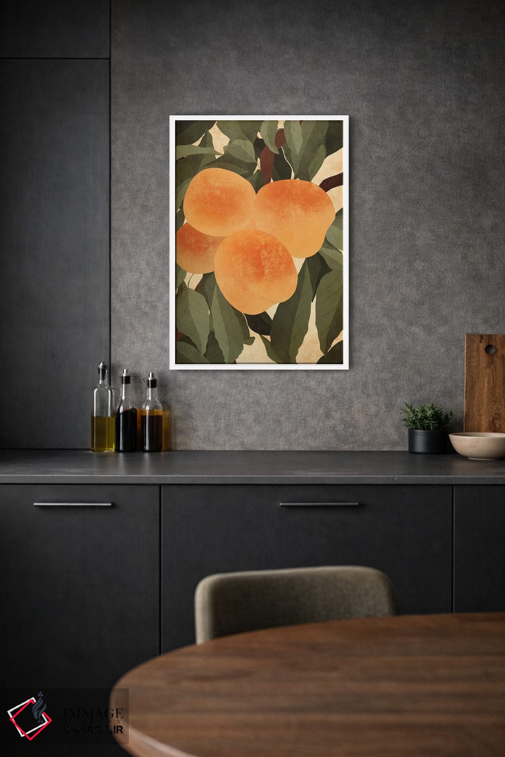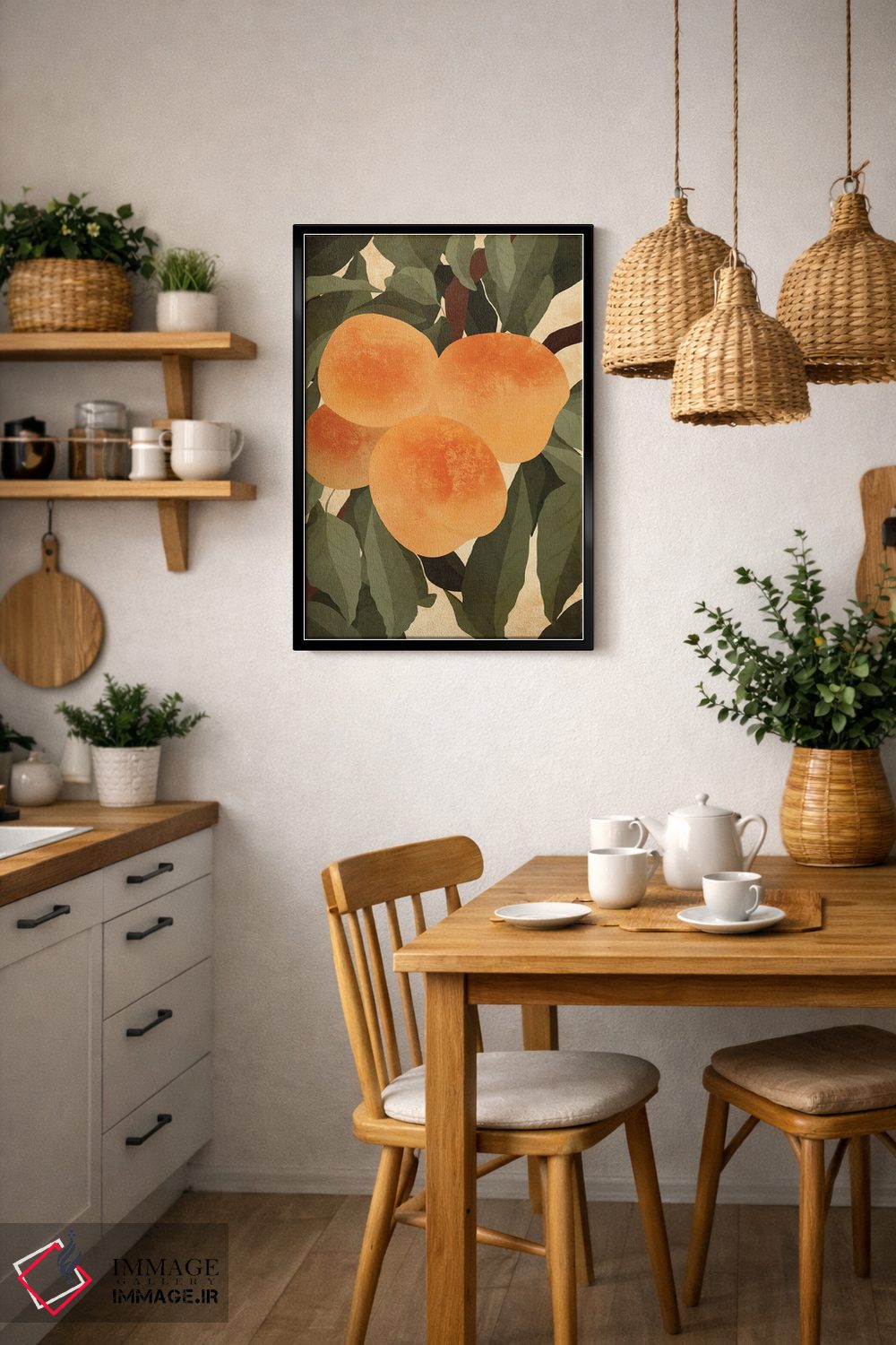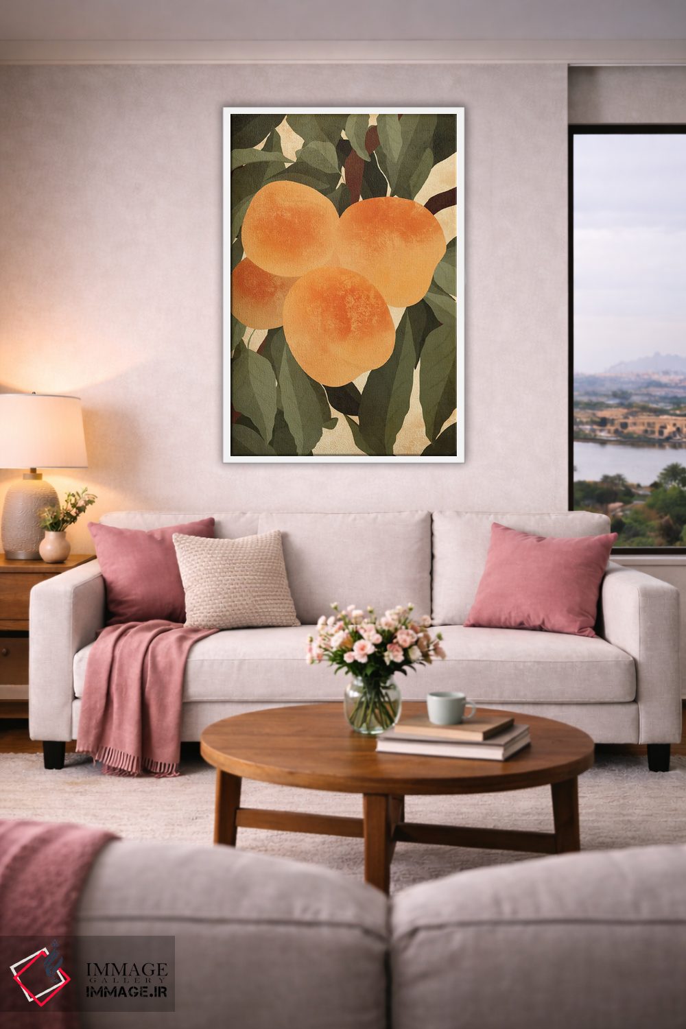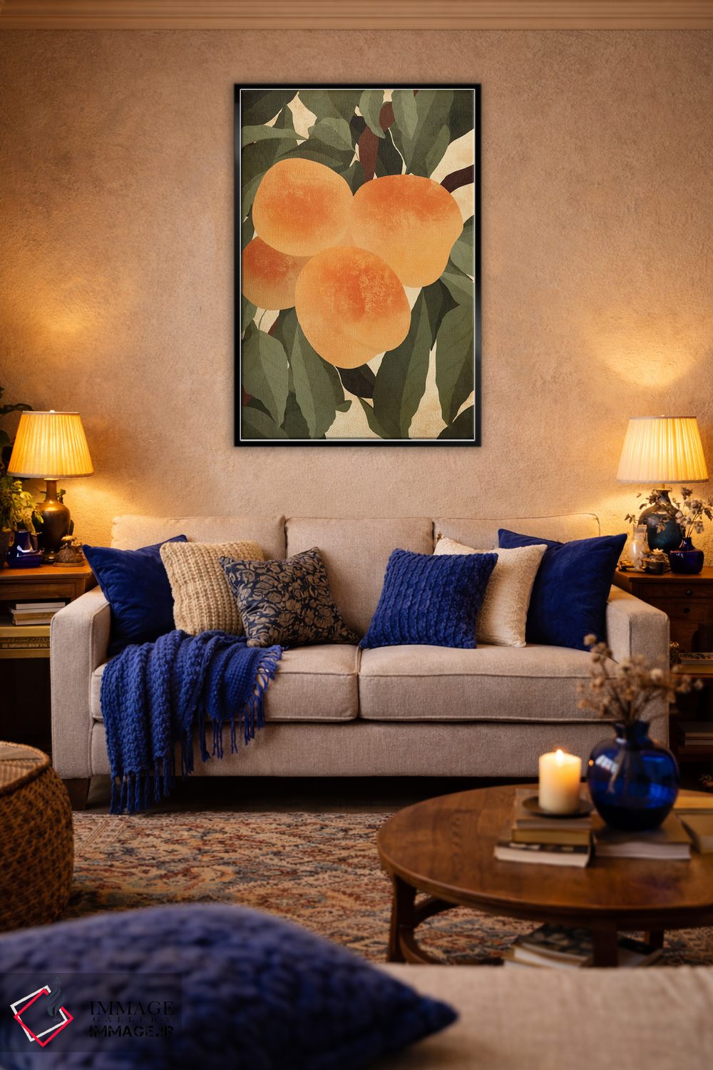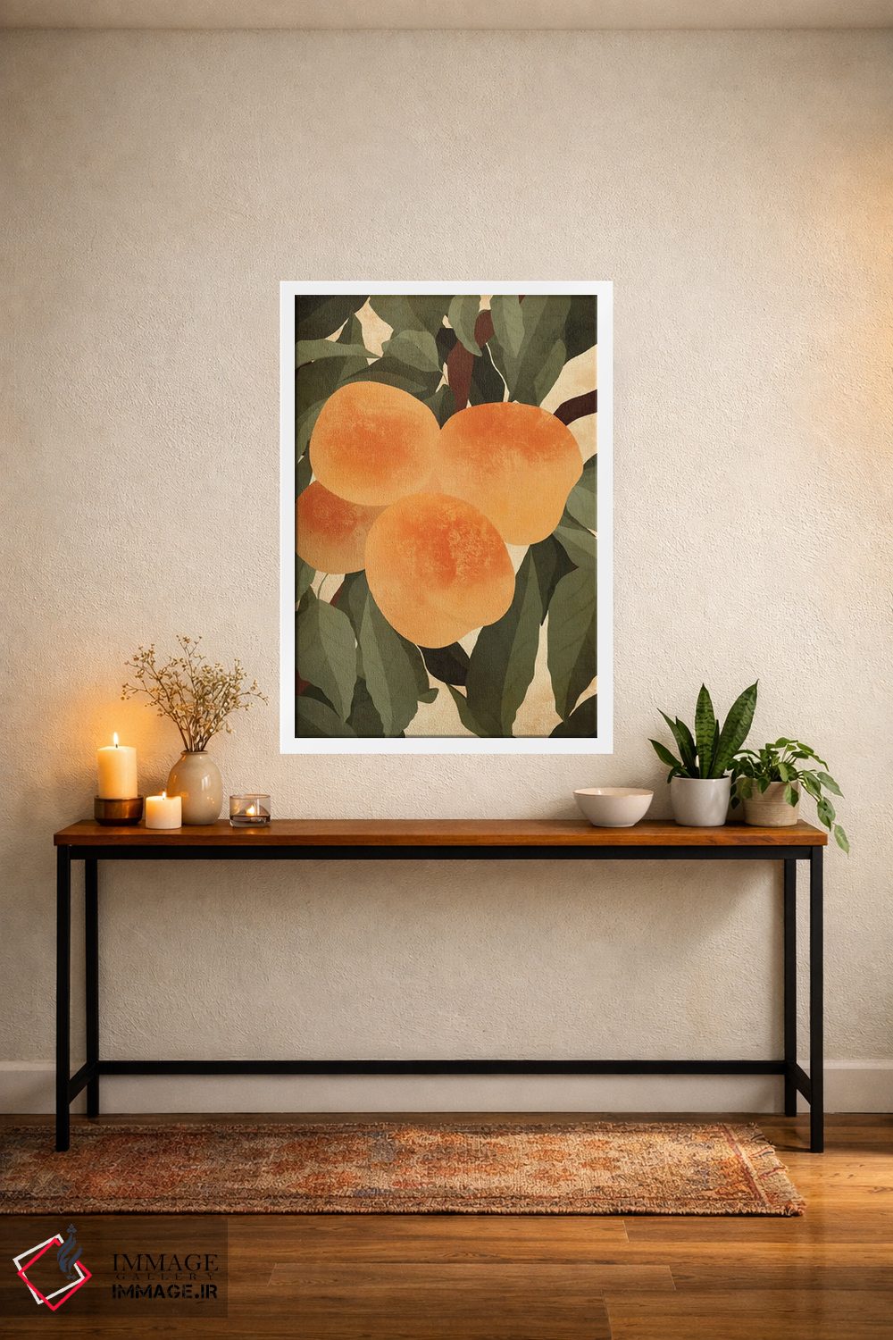 این اثر با عنوان «هلوها» اثرِ «ایتسفانیهو (هنرمند دیجیتال)» به دیوار، روشناییِ ملایم و دلنشین میدهد؛ برای کنار میز آرایش یا کنسول انتخابی خوشسلیقه است. در کنار گیاهان آپارتمانی، هماهنگتر هم میشود.