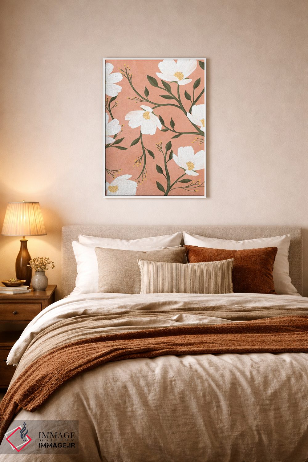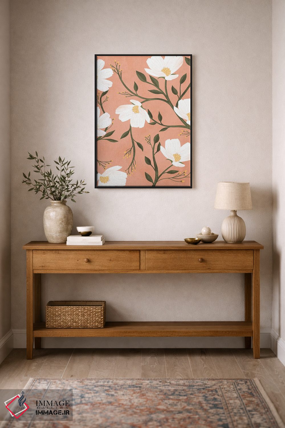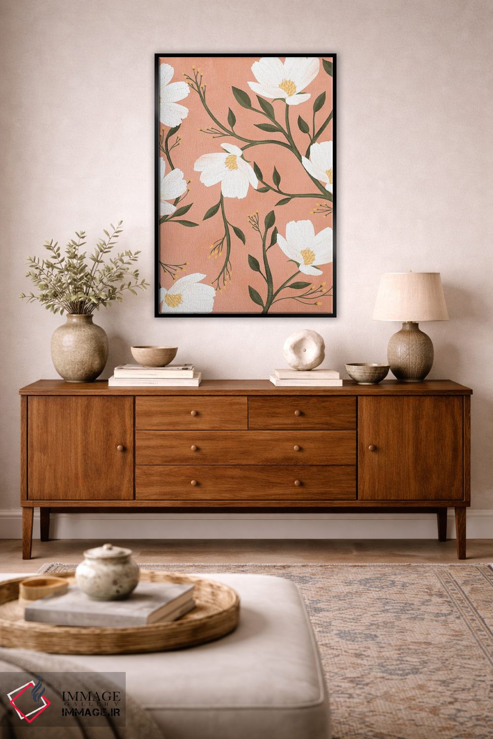 براساس پالت ترکیبی اثر، قاب تیک گرم (چوبی) پیشنهاد اول است و مشکی مات (فریم متوسط) مکمل. برای سفارشهای پروژهای با ابعاد و قابهای اختصاصی با ایماژ در تماس باشید.