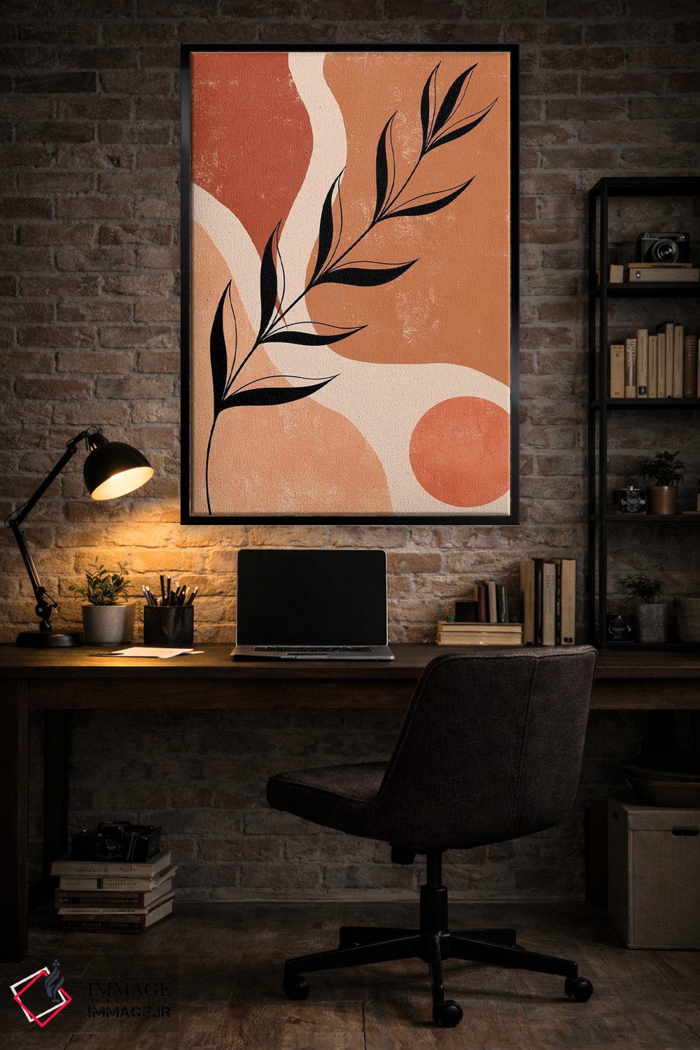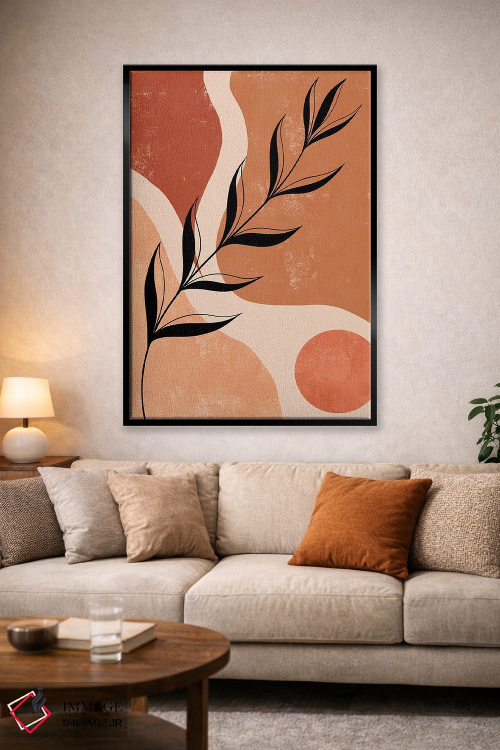 برای اتاق خواب و نشیمنهای آرام، «برگ سیاه» اثرِ «ایتسفانیهو (هنرمند دیجیتال)» تعادل رنگیِ لطیفی به چیدمان میدهد؛ برای هدیه دادن انتخابی خوشسلیقه است. با قاب روشن یا چوبی، حس طبیعیتری پیدا میکند.