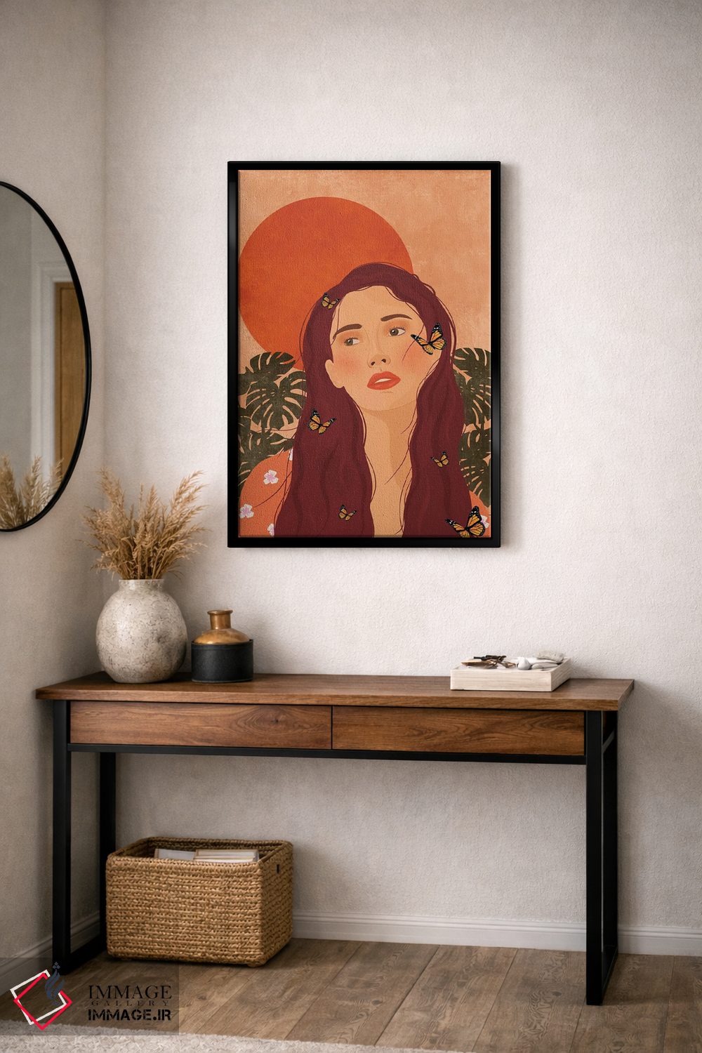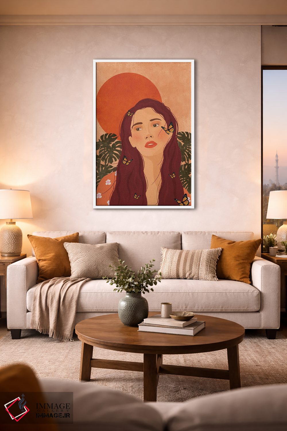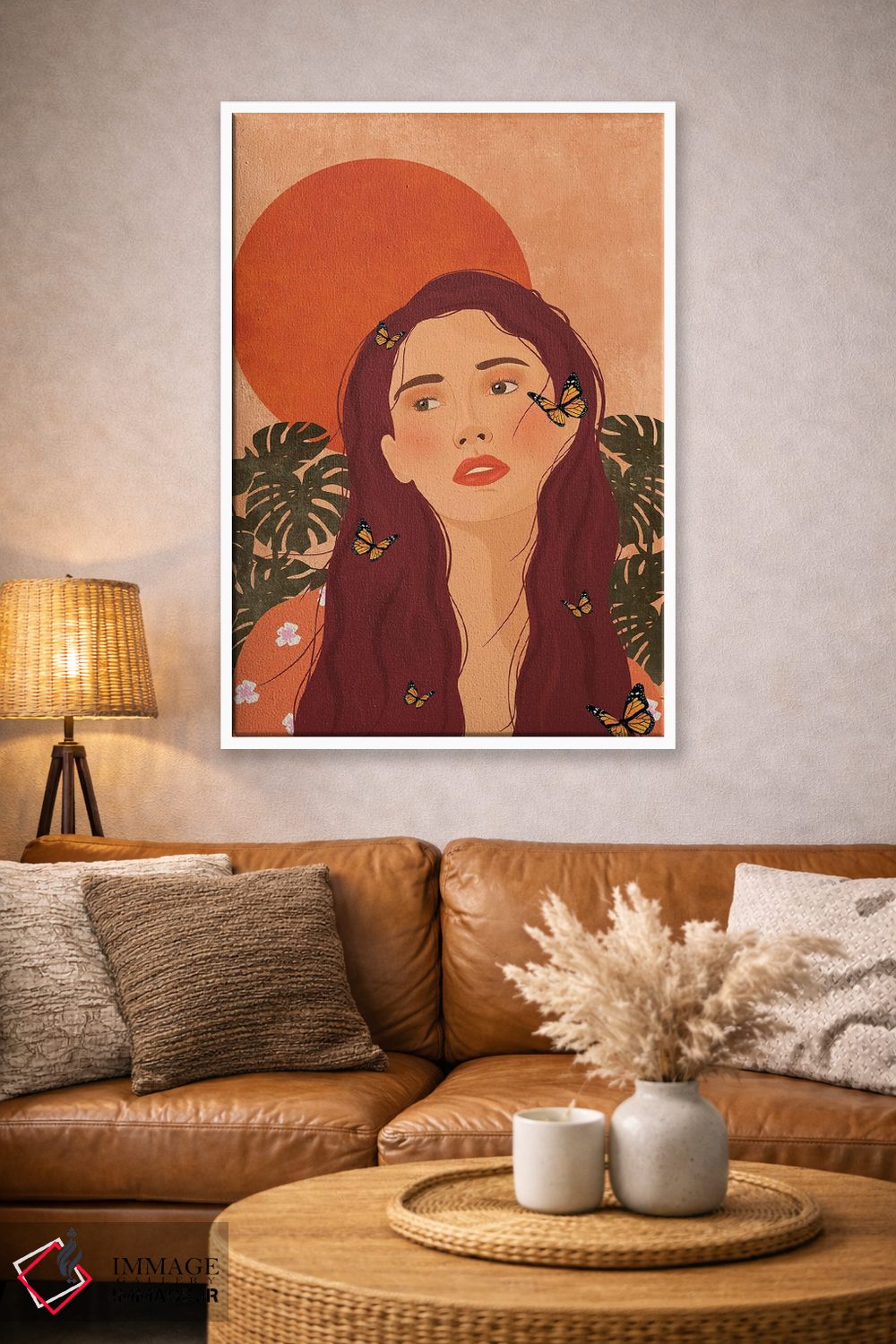 براساس پالت گرم اثر، قاب تیک گرم (چوبی) پیشنهاد اول است و مشکی مات (فریم متوسط) مکمل. برای سفارشهای پروژهای با ابعاد و قابهای اختصاصی با ایماژ در تماس باشید.