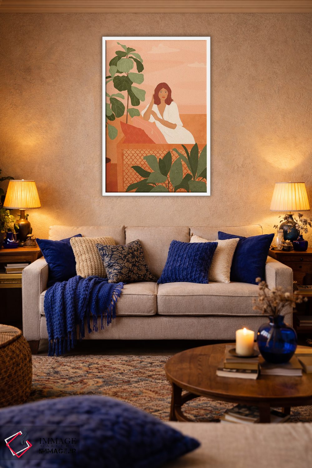 بوم گالری ایماژ نسخهی چیدماناتیوِ سطحبالا از یک اثر هنری است. روی کنواس سفیدِ یکدست و بدون اسید با اجرای چاپ هنری جیکلی (Giclée) برای آرتپرینتهای جدی با جوهرهای آرشیویِ حرفهای برای لایههای رنگی خواناتر؛ حس نهایی نزدیکتر به ارائهی گالریوار است؛ نه صرفاً یک تصویر. تابلو پس از آمادهسازی روی کلاف کشیده میشود و نصب آن ساده و بیدردسر است.