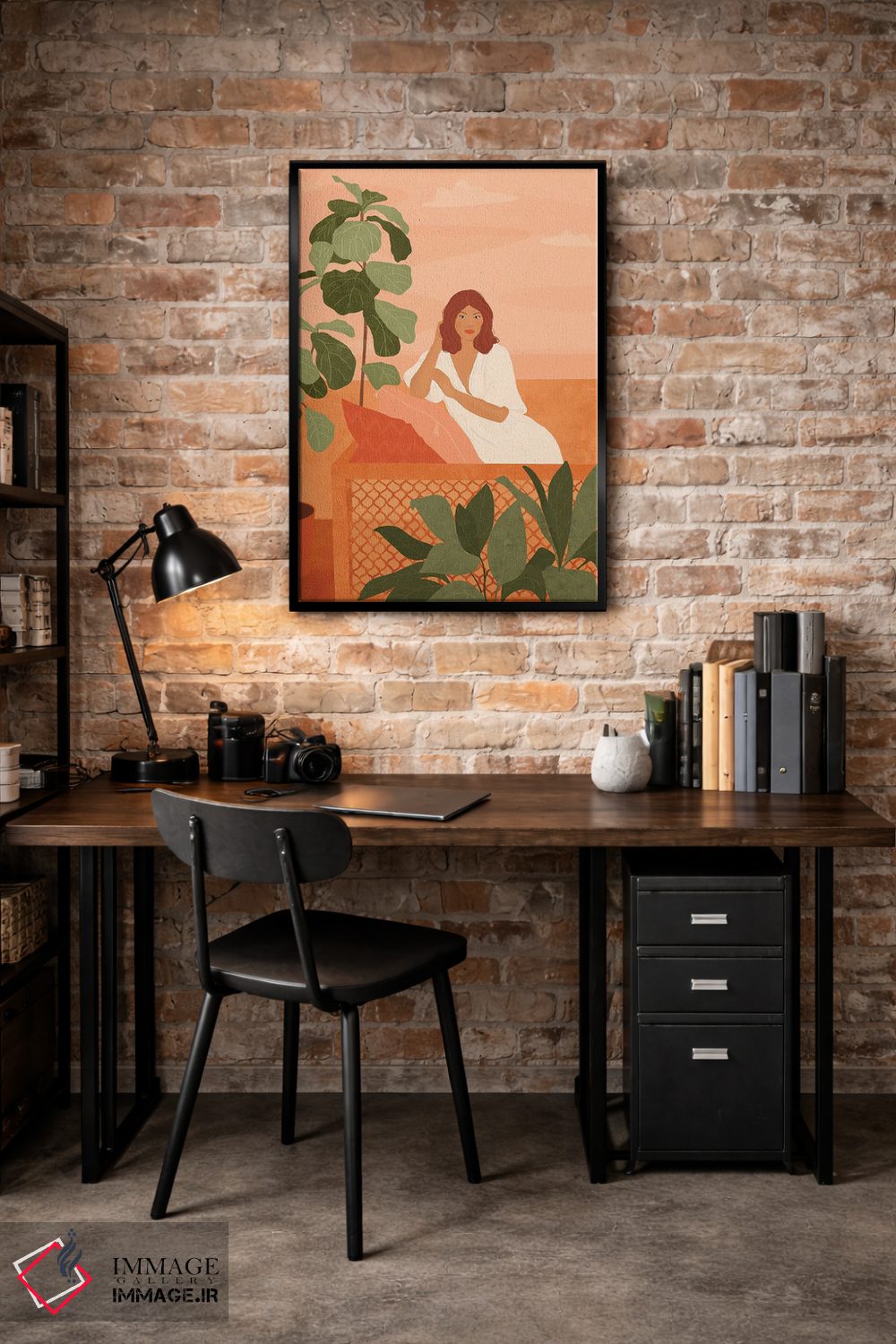 براساس پالت ترکیبی اثر، قاب تیک گرم (چوبی) پیشنهاد اول است و مشکی مات (فریم متوسط) مکمل.