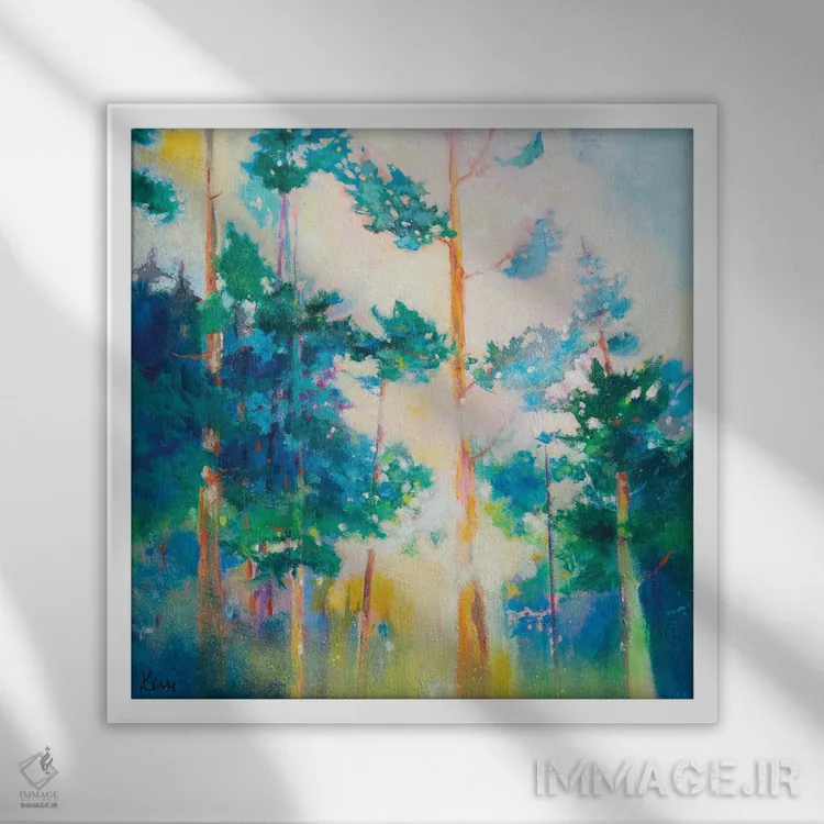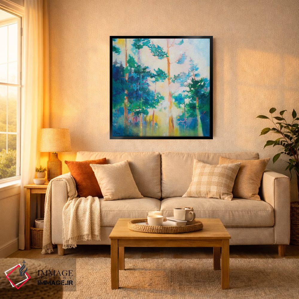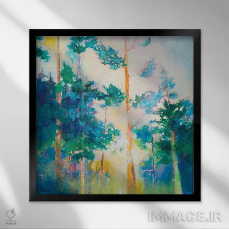 براساس پالت ترکیبی اثر، قاب تیک گرم (چوبی) پیشنهاد اول است و مشکی مات (فریم متوسط) مکمل. برای سفارشهای پروژهای با ابعاد و قابهای اختصاصی با ایماژ در تماس باشید.