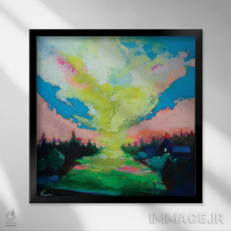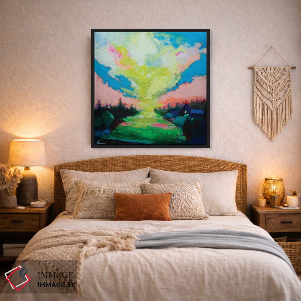 براساس پالت ترکیبی اثر، قاب تیک گرم (چوبی) پیشنهاد اول است و مشکی مات (فریم متوسط) مکمل. برای سفارشهای پروژهای با ابعاد و قابهای اختصاصی با ایماژ در تماس باشید.