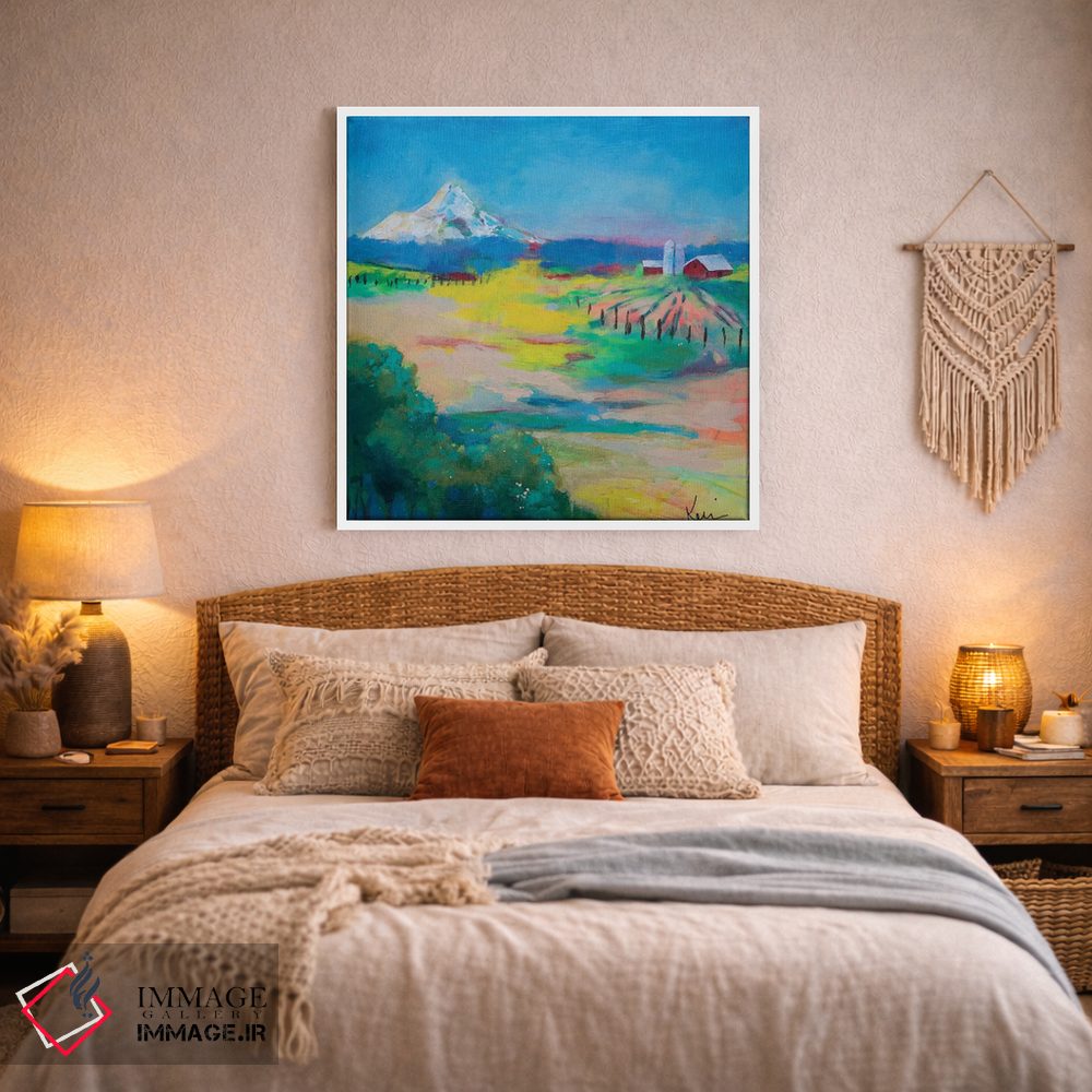 براساس پالت ترکیبی اثر، قاب تیک گرم (چوبی) پیشنهاد اول است و مشکی مات (فریم متوسط) مکمل. برای سفارشهای پروژهای با ابعاد و قابهای اختصاصی با ایماژ در تماس باشید.