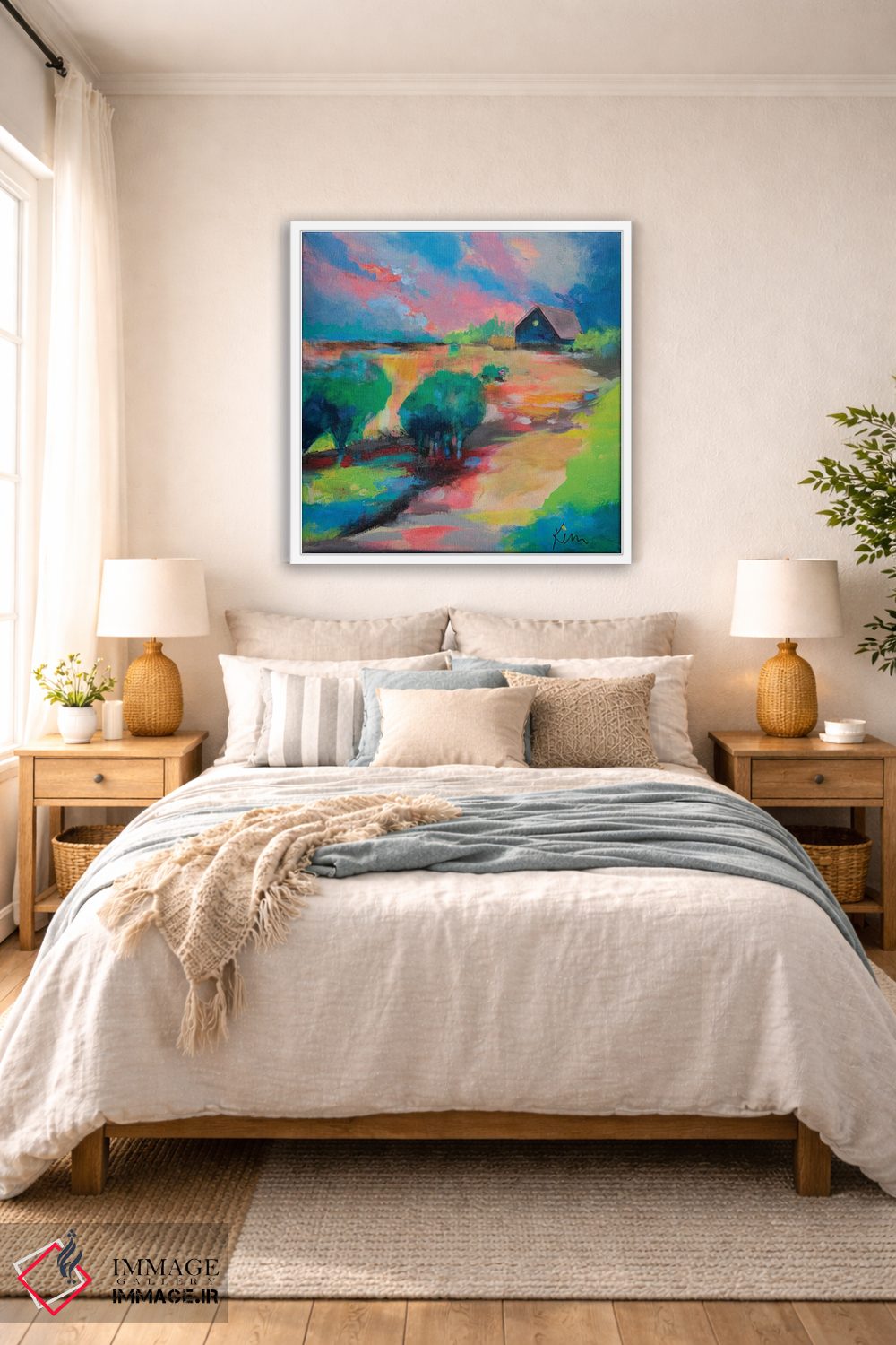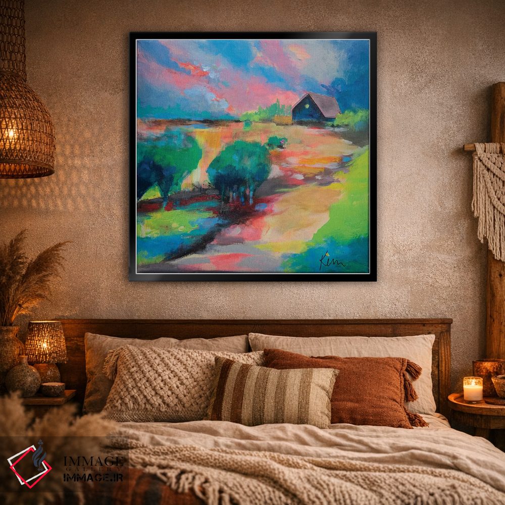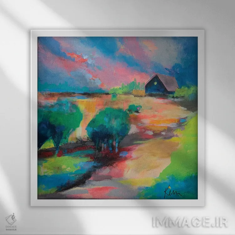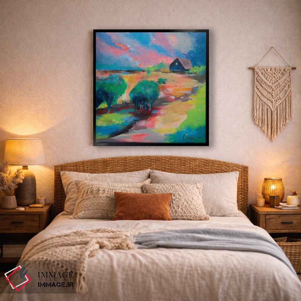 براساس پالت ترکیبی اثر، قاب تیک گرم (چوبی) پیشنهاد اول است و مشکی مات (فریم متوسط) مکمل. برای سفارشهای پروژهای با ابعاد و قابهای اختصاصی با ایماژ در تماس باشید.