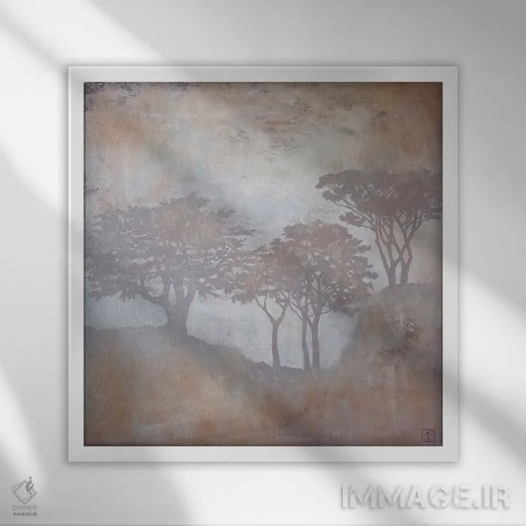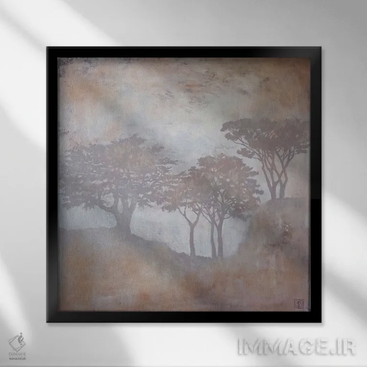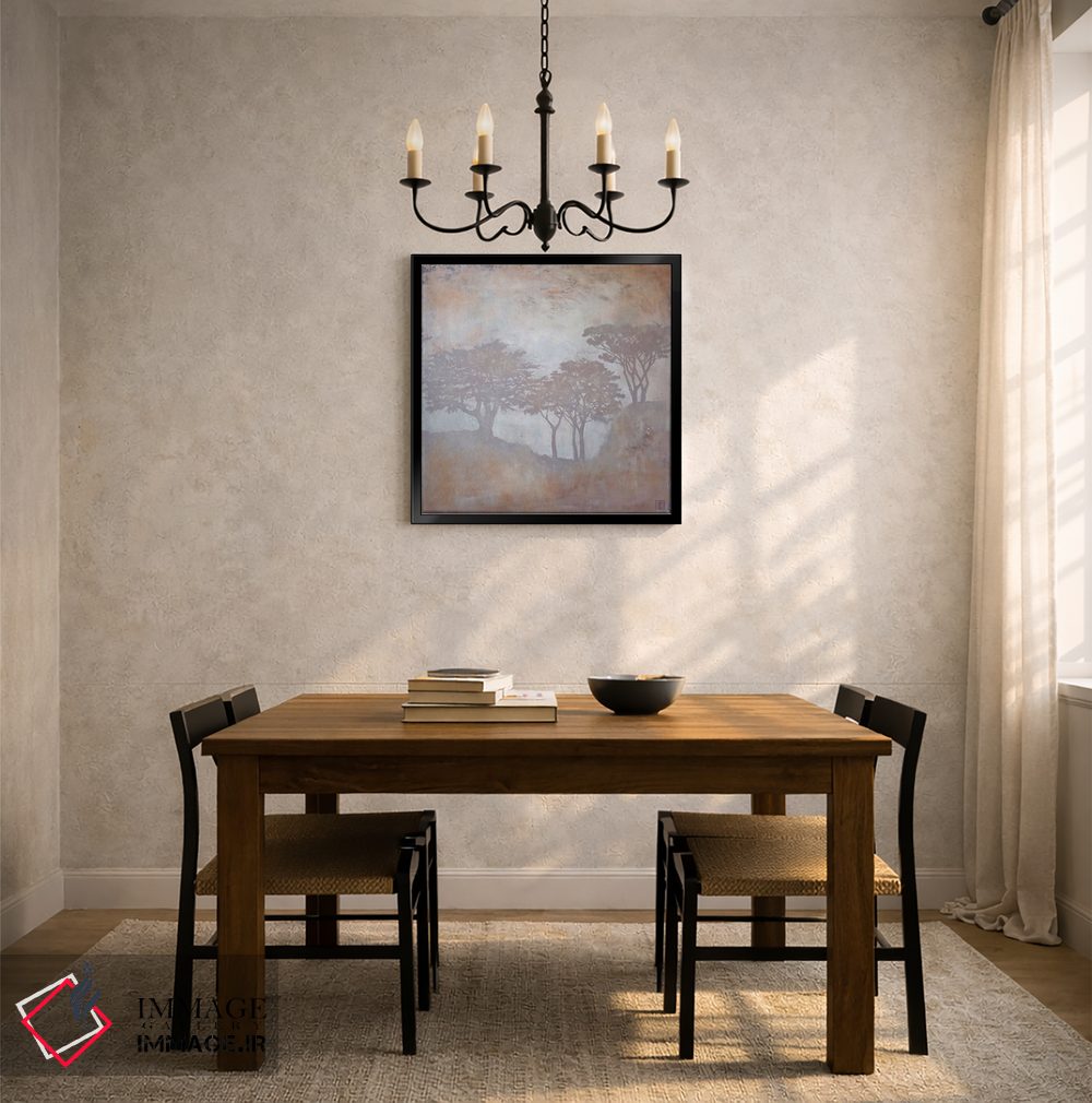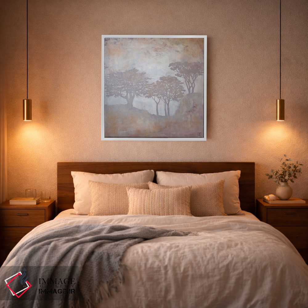 براساس پالت گرم اثر، قاب بلوط روشن (چوبی) پیشنهاد اول است و استخوانی ملایم مکمل. برای سفارشهای پروژهای با ابعاد و قابهای اختصاصی با ایماژ در تماس باشید.